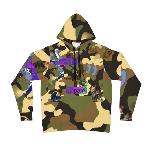 Camo Graphic Unisex Hoodie — Bold All-Over Print with 'Apparel' Accent