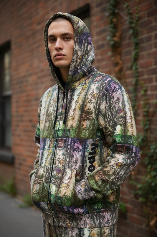 "Ungodly Blur" Urban Style Men's Full-Zip Hoodie