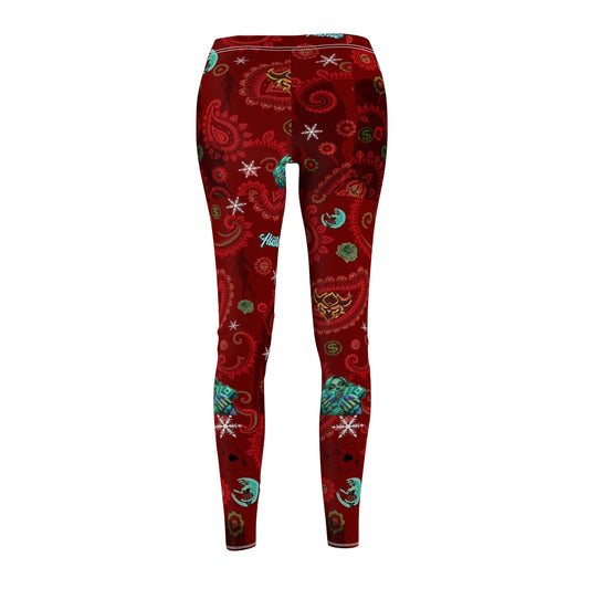Holiday Paisley Leggings — Festive Red Christmas Patterned Women's Leggings