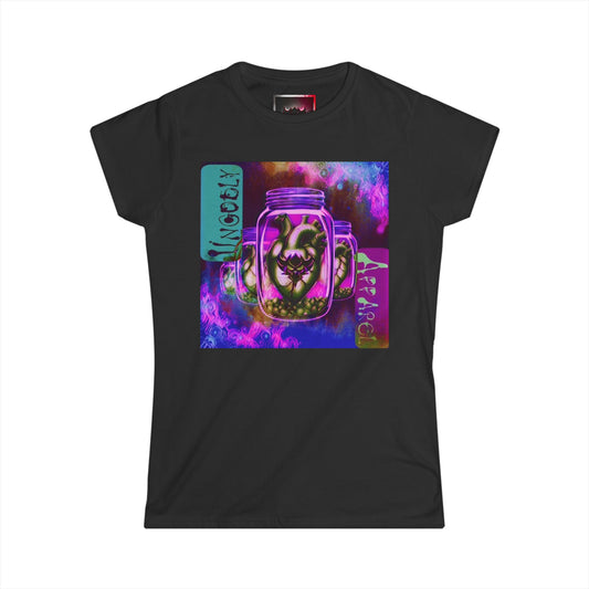"Ungodly Heart" Colorful Vintage-Inspired Women's Softstyle Tee with Floral Jar Design