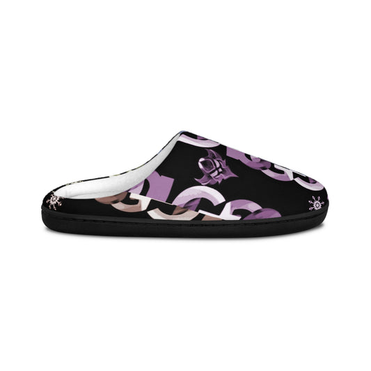 Ungodly Chain Pattern Women's Indoor Slippers — Pastel Links on Black Cozy House Shoes