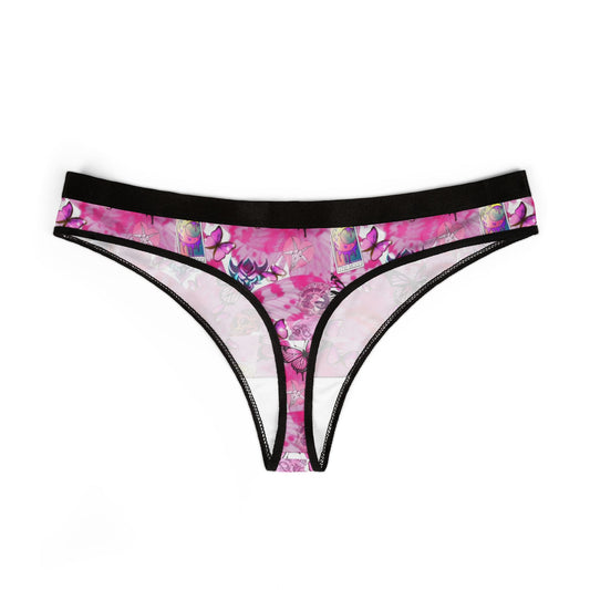 Pink Butterfly Print Women's Thong — Floral AOP Lingerie