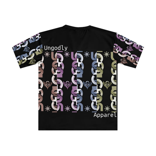 Bold Multi-colored Ungodly Chain Pattern Graphic T‑Shirt — All-Over Print Men's Tee