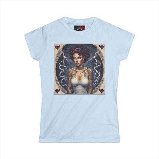 Gothic Glam Frankenstein's Bride Women's Heavy Cotton T-Shirt - Vintage Tattoo Art Design