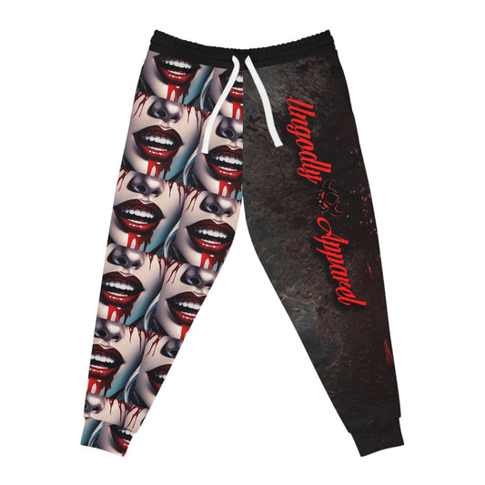 "Ungodly Fetish" Unique Graphic Athletic Joggers | Bold Red Pattern | Comfortable Casual Wear for Everyday & Fitness