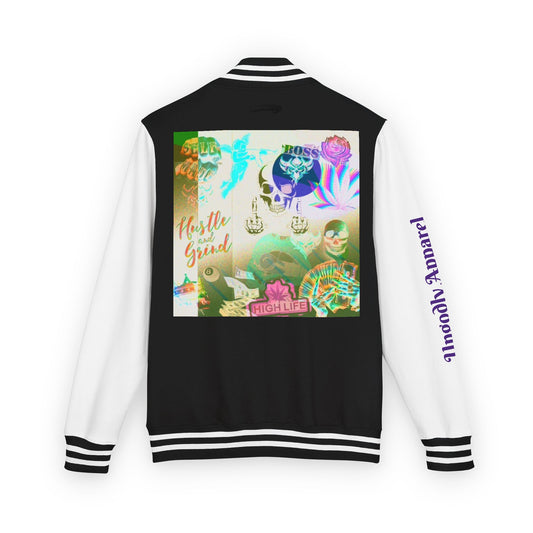 "Hustle and Grind" Letterman Jacket — Neon Collage Heart & 'Hustle Hard' Streetwear