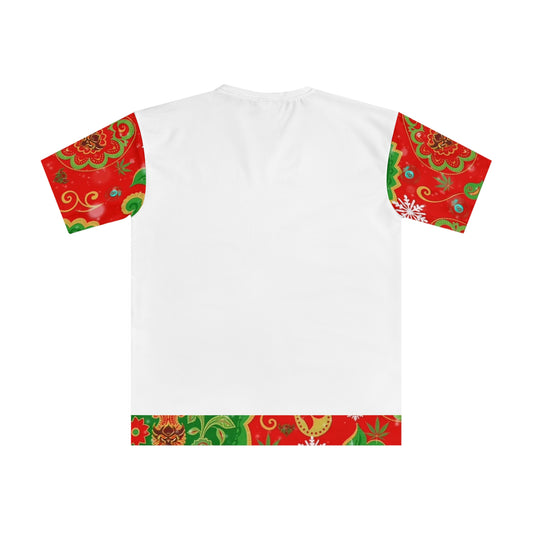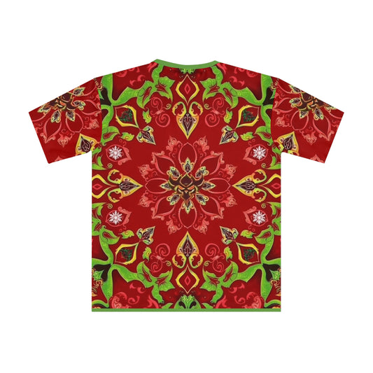 Red Kaleidoscope Christmas T-Shirt — Bold All-Over Printed Men's Tee
