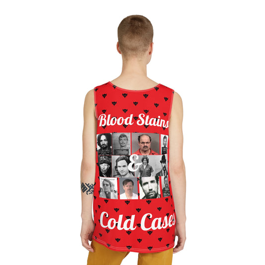 Men's True Crime-Inspired Tank Top - 'Blood Stains & Cold Cases" Design