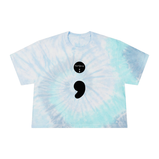 Women's "Semi-Colon/Don't Give Up" Tie-Dye Crop T-Shirt