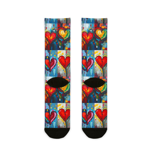 Colorful Heart Art Crew Socks - Perfect for Valentine's Day and Everyday Love