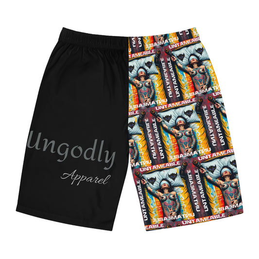 "Ungodly Fetish Board Shorts" Bold Graphic Board Shorts - Trendy Swimwear for Beach Days, Summer Fun, Pool Parties, or Vacation Style - Ungodly Apparel
