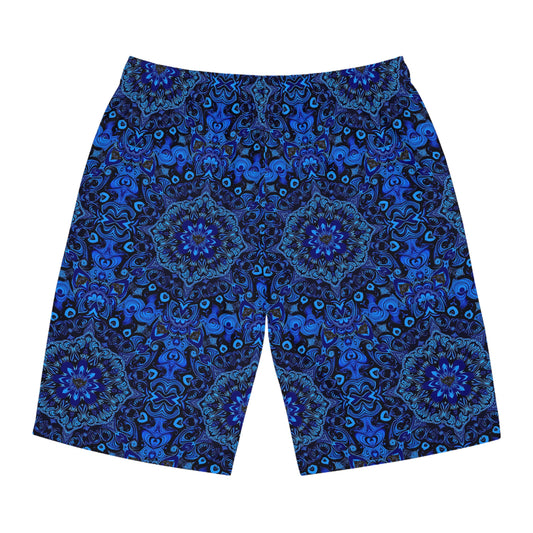 "Ungodly Blue Paisley" Patterned Men's Board Shorts, Summer Swimwear, Beach Day Essentials, Vacation Style, Activewear, Unique Swim Trunks