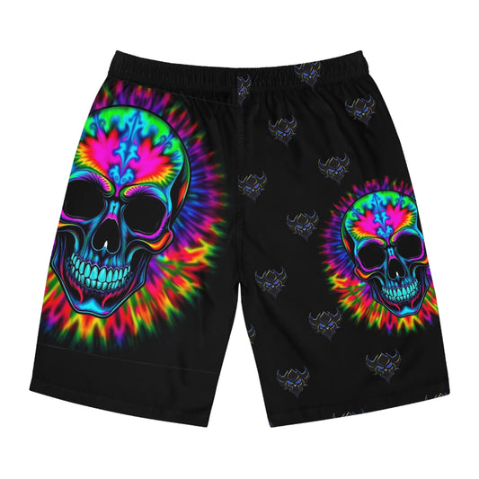 "Ungodly Skull" Vibrant Skull Men's Board Shorts, Summer Swimwear, Beachwear, Festival Gear, Casual Shorts, Unique Pool Attire