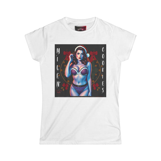 Holiday Festive Pin-Up Style Women's Softstyle T-Shirt - "Milf N' Cookies" Graphic T-Shirt