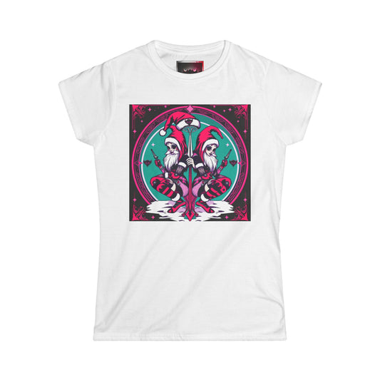 Whimsical Women's Softstyle T-Shirt - Festive Dual-Gothic Elf Design for Holidays