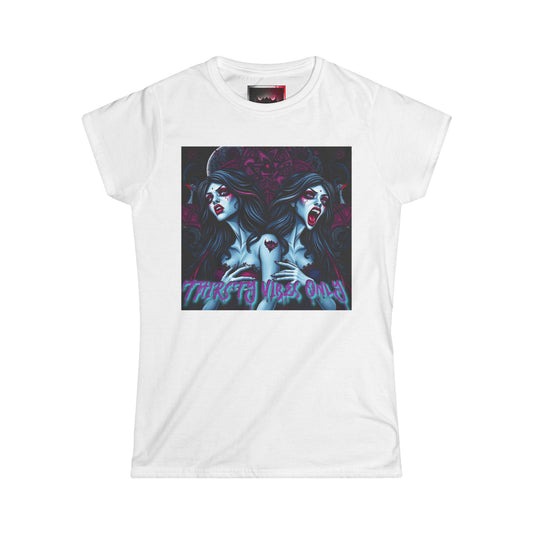 "Thirsty Vibes Only" Women's Softstyle Tee - Edgy Vampire Graphic T-Shirt for Bold Fashionistas, Perfect for Halloween, Everyday Wear, Gifts