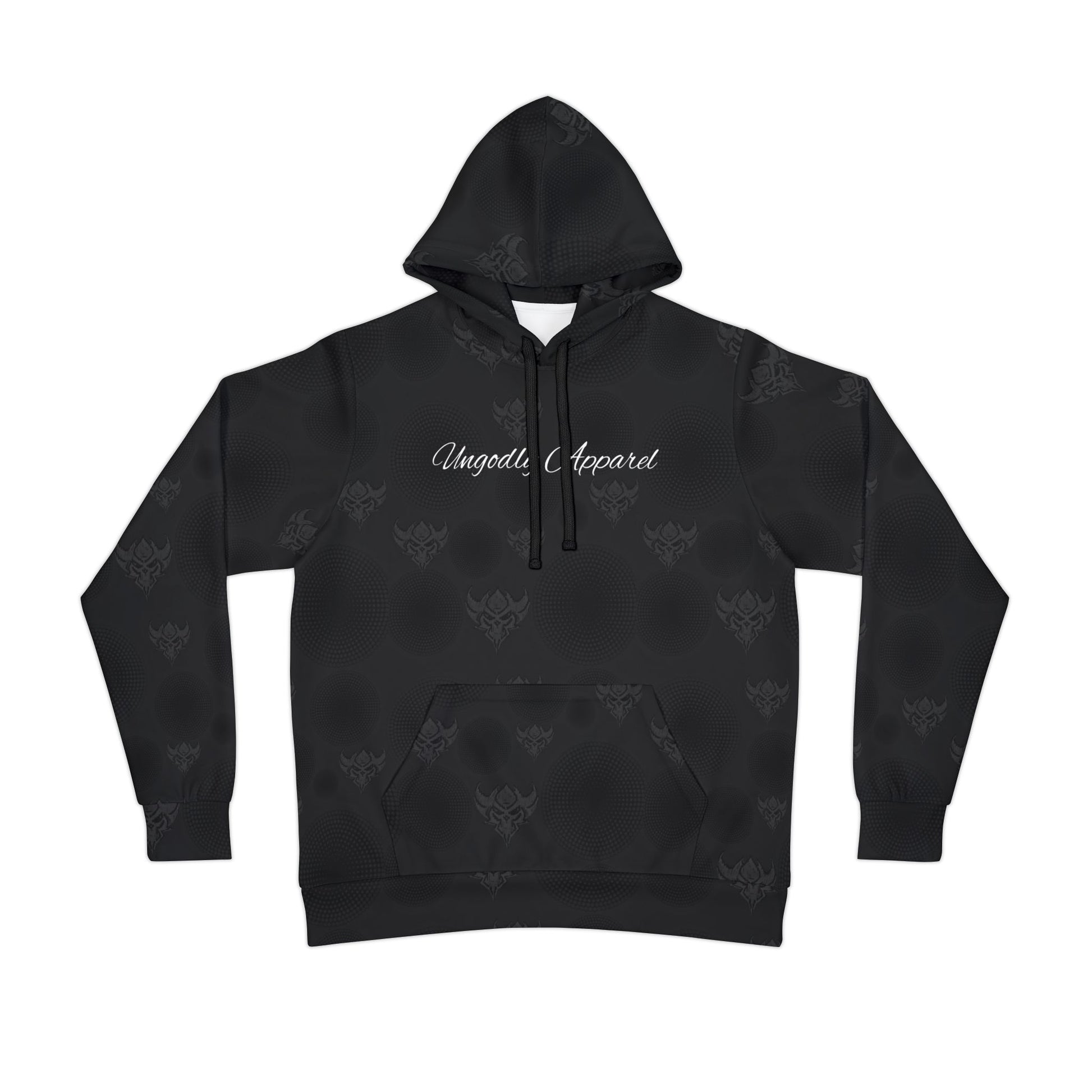 Black on Black Ungodly Logo Unisex Athletic Hoodie — Urban Noir All-Over Logo Hoodie