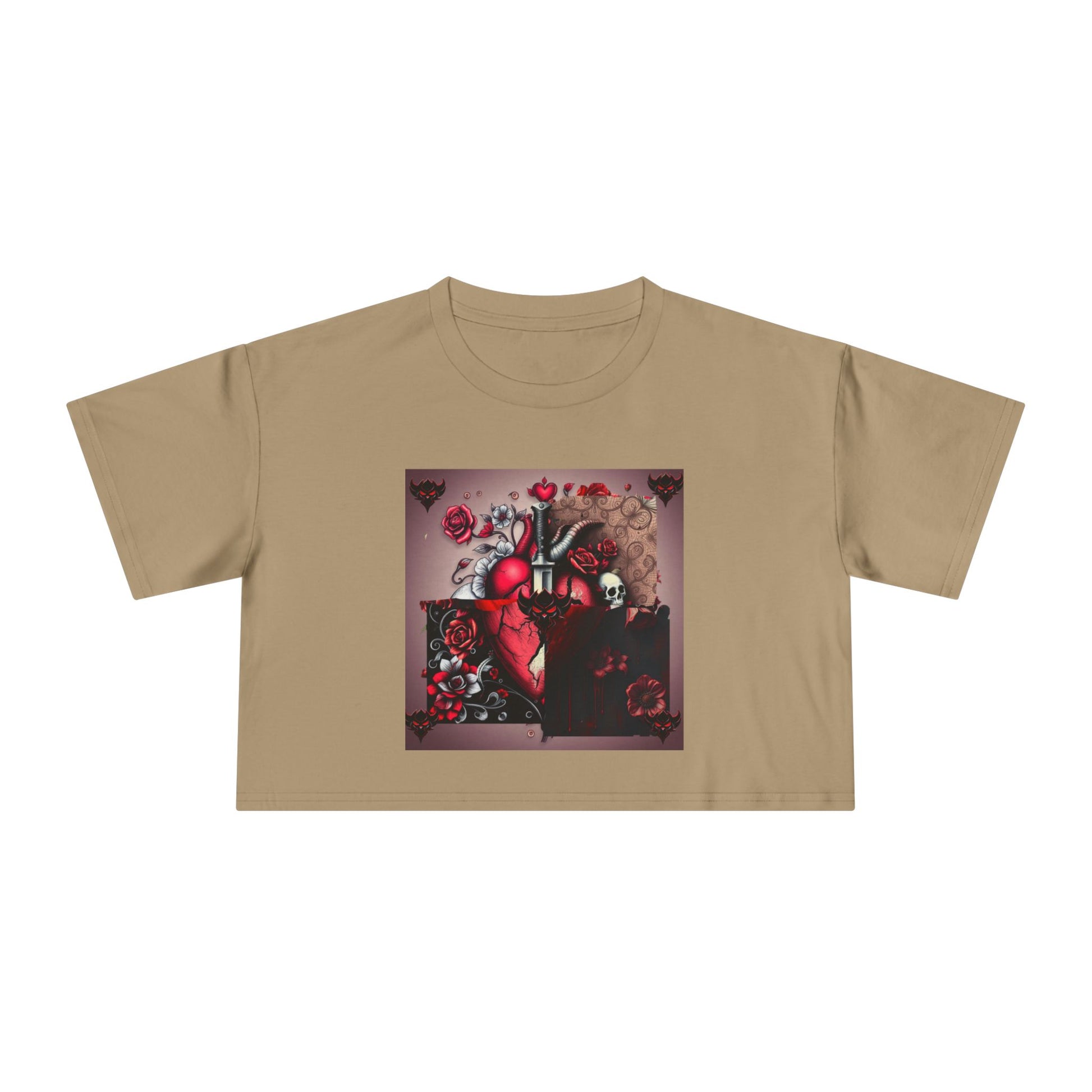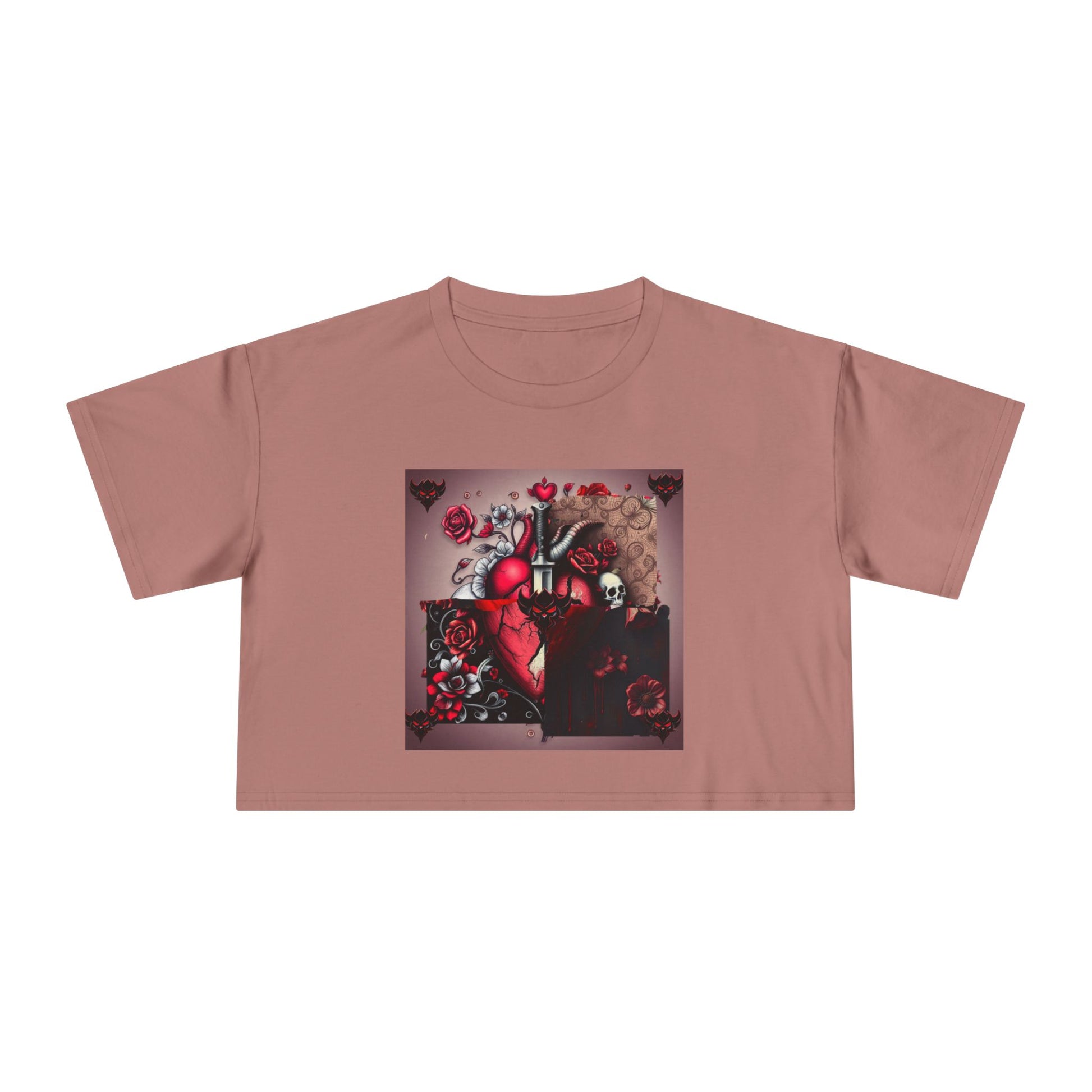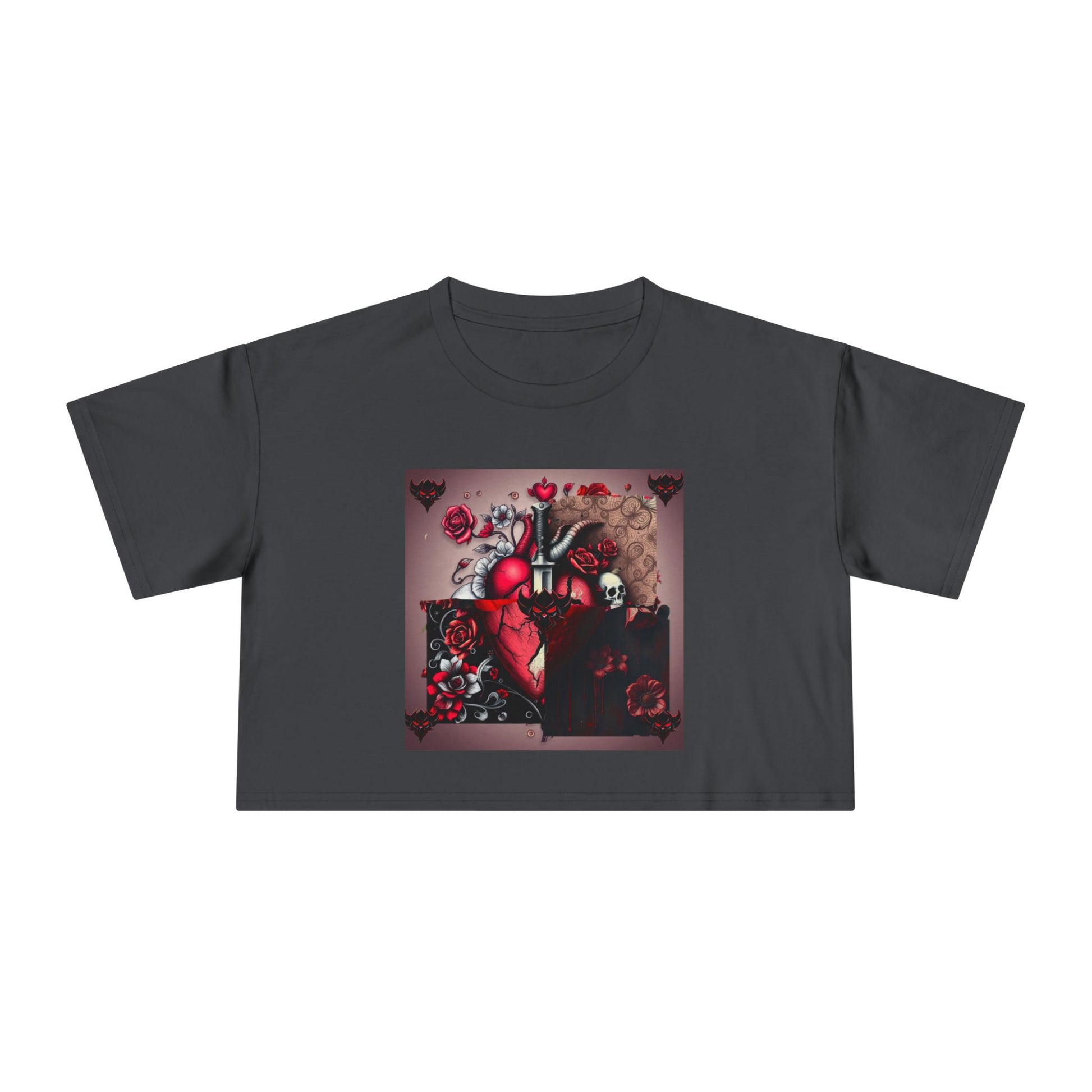 "Tangled Hearts" Bold Heart Floral Women's Crop Tee | Unique Graphic Tee for Casual Style