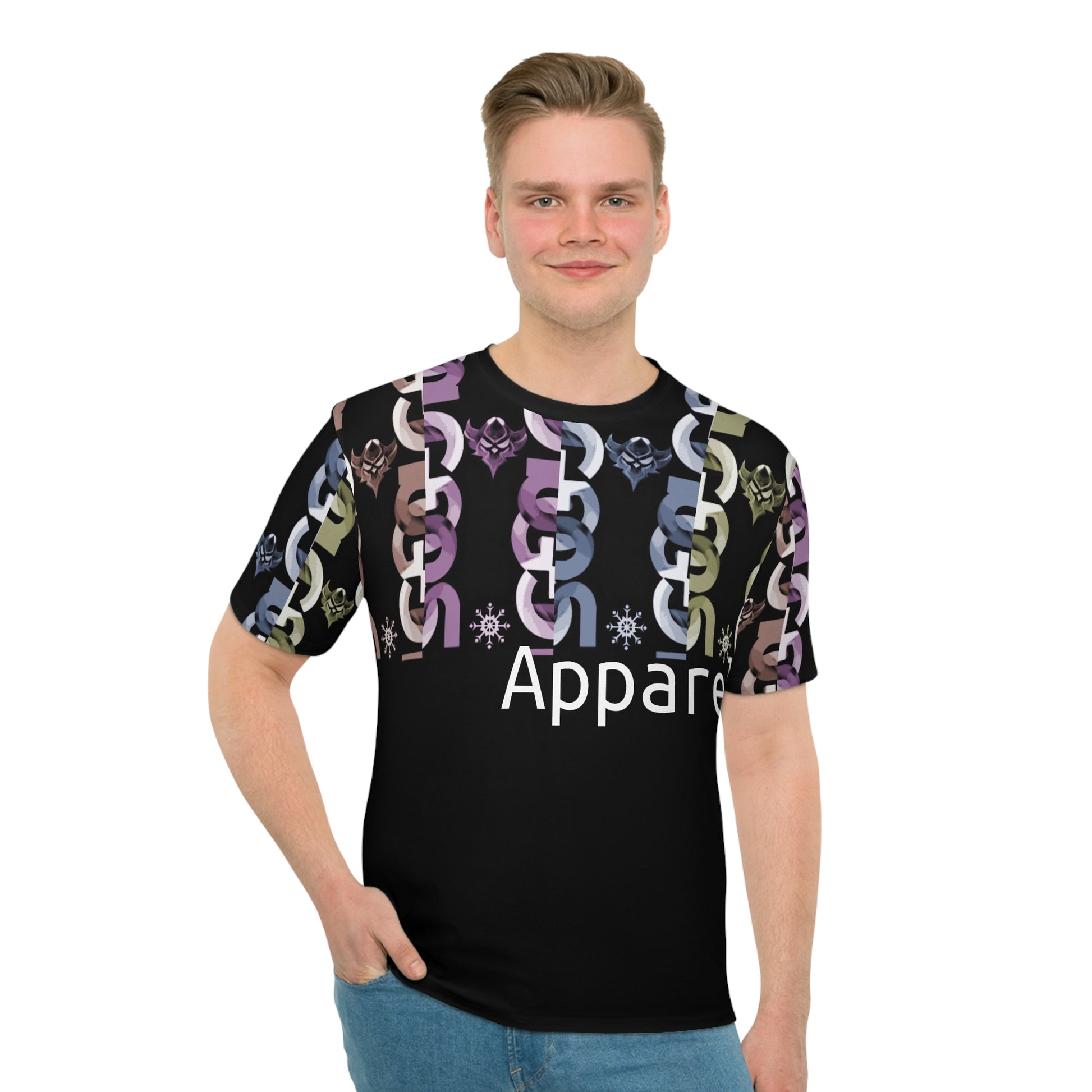A bold all-over print tee that carries a moody, urban edge. Vertical pastel chains and small occult symbols float against a deep black backdrop, creating a contrast that’s both soft and striking. The relaxed fit and featherlight fabric let the design move with you — whether you’re layered under a jacket or worn solo on late-night walks. Wear it when you want your style to read mysterious and effortless: a statement that feels lived-in, not loud. The round neckline and clean hems keep the silhouette simple so the artwork remains the focal point. This shirt settles into your rotation for music nights, city wanderings, or when you’re dressing to feel a little otherworldly.