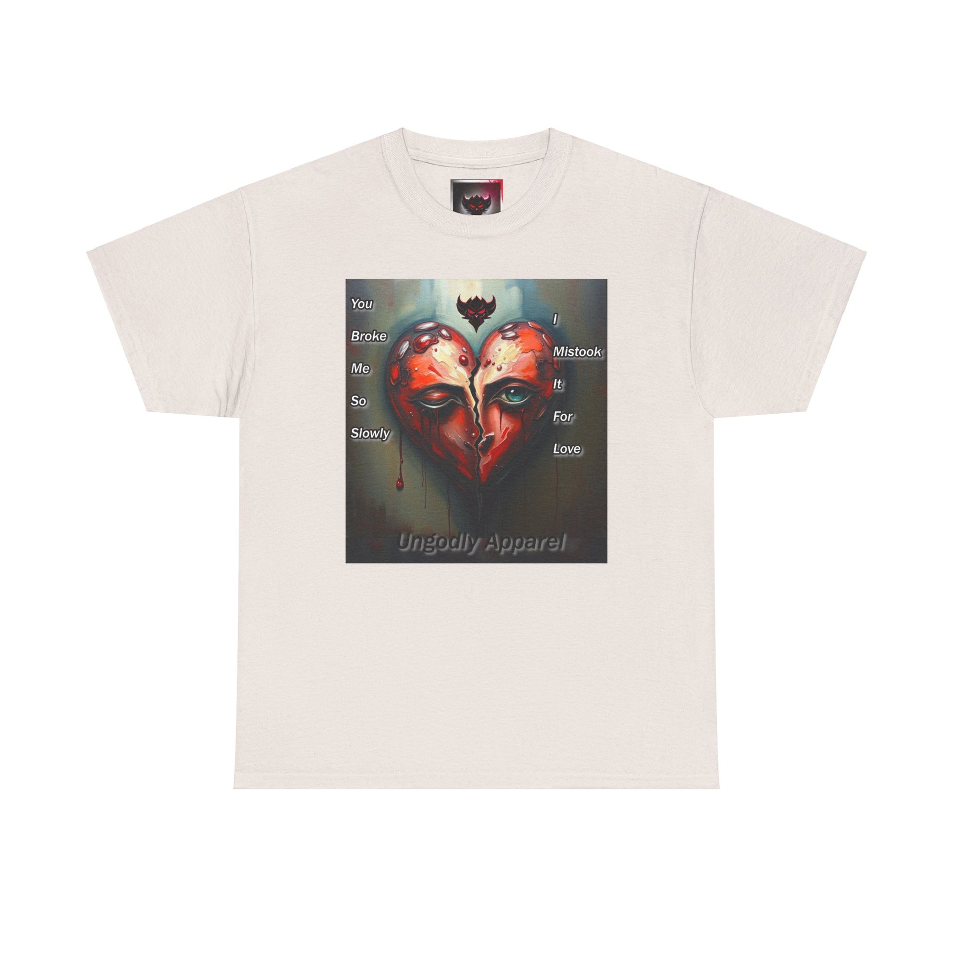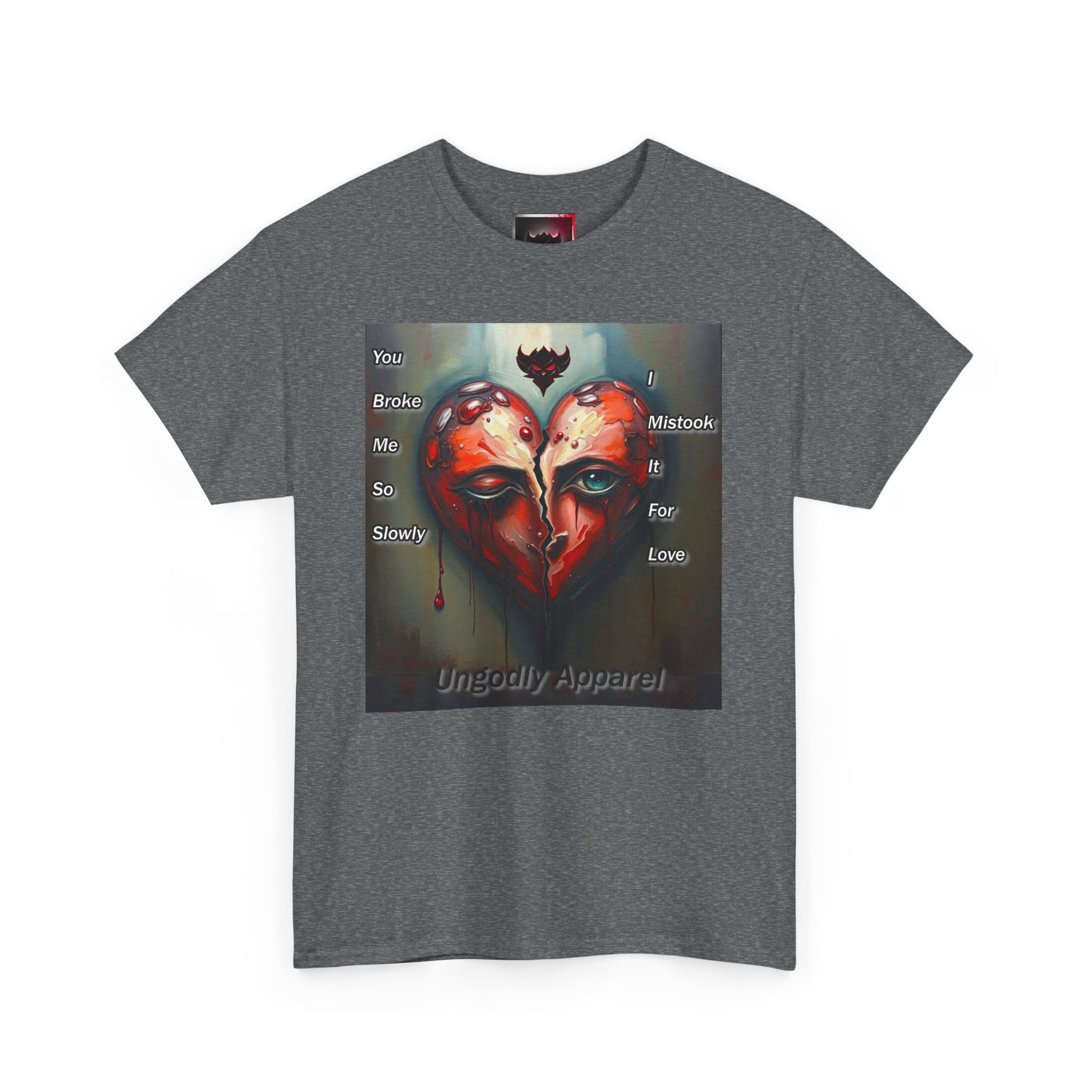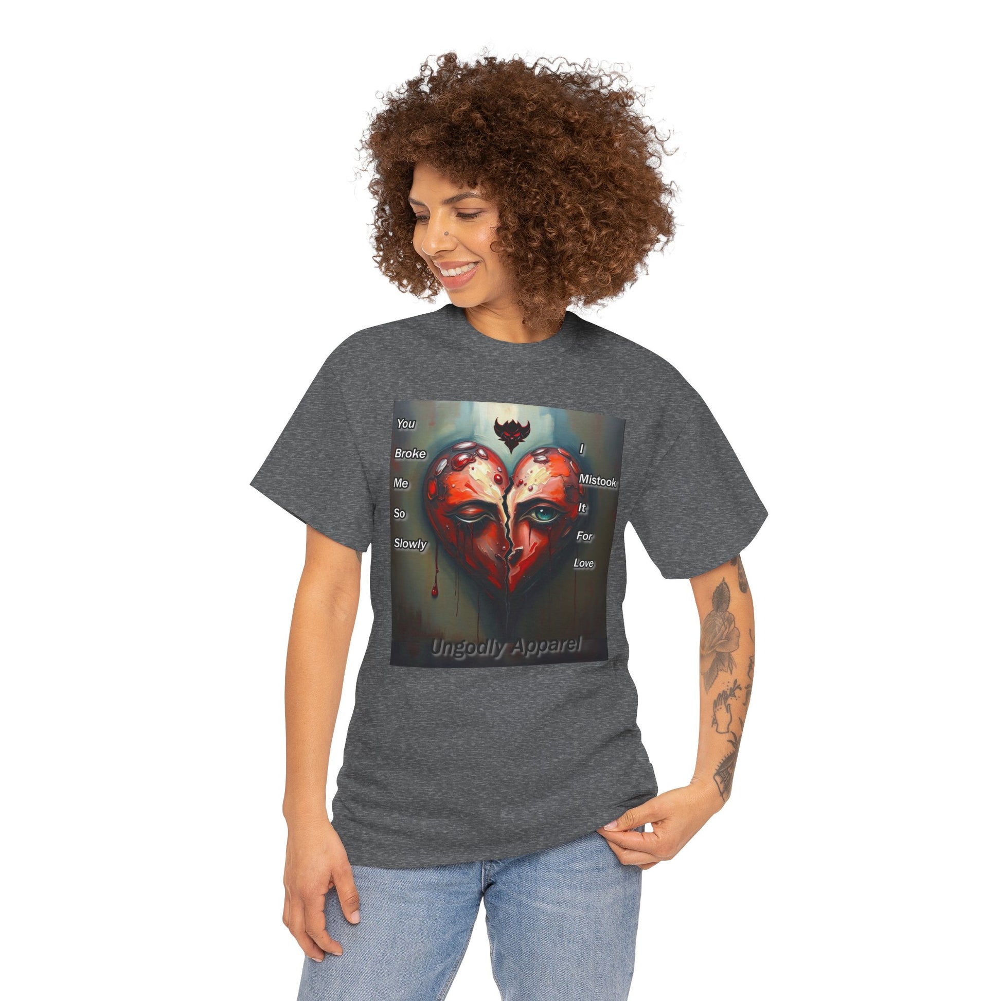 Emotional Heart Unisex Heavy Cotton Tee - 'You Broke Me So Slowly' Design