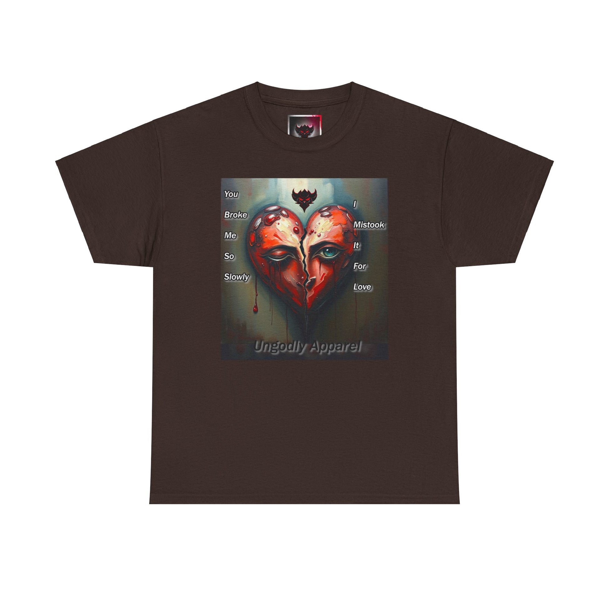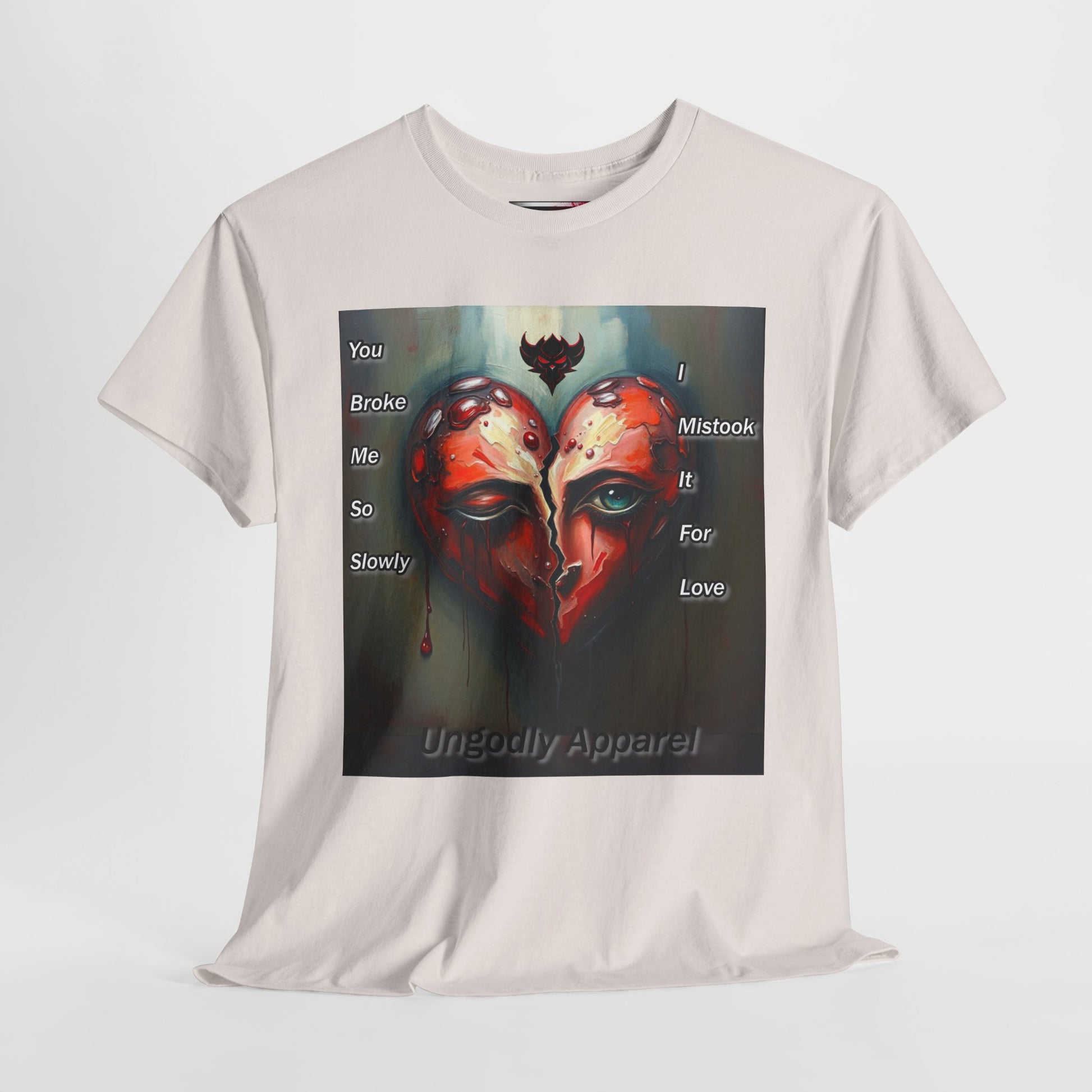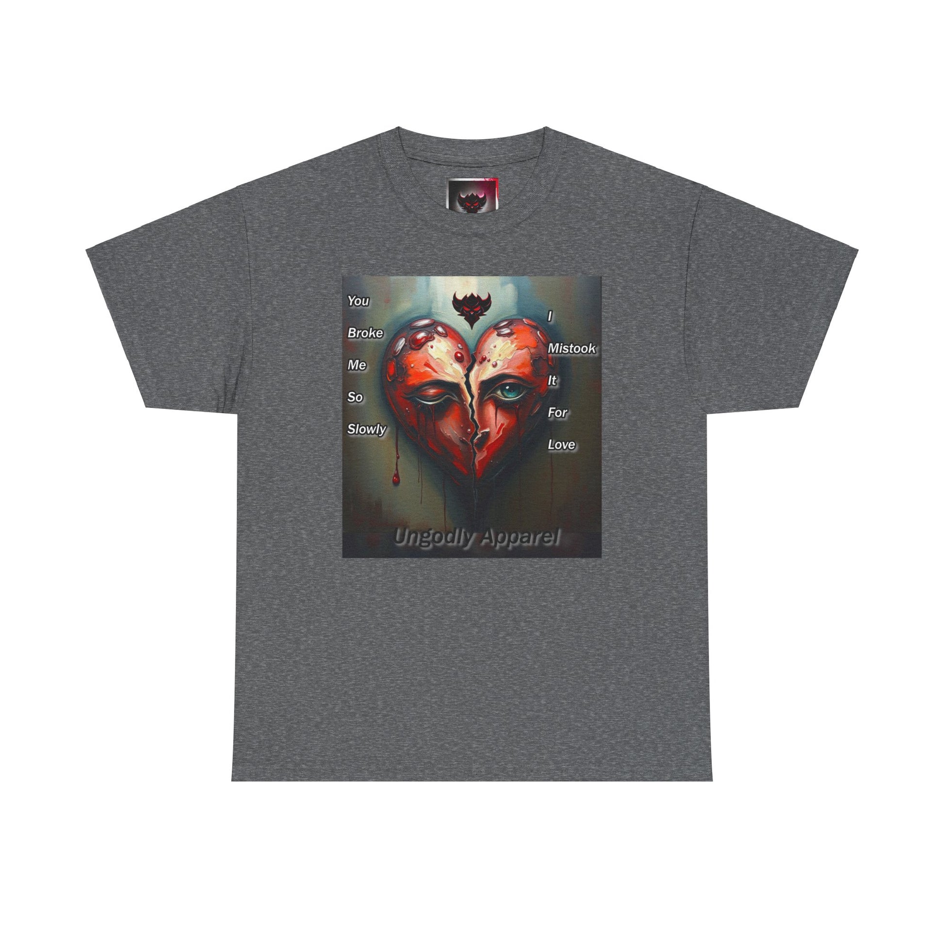 Emotional Heart Unisex Heavy Cotton Tee - 'You Broke Me So Slowly' Design