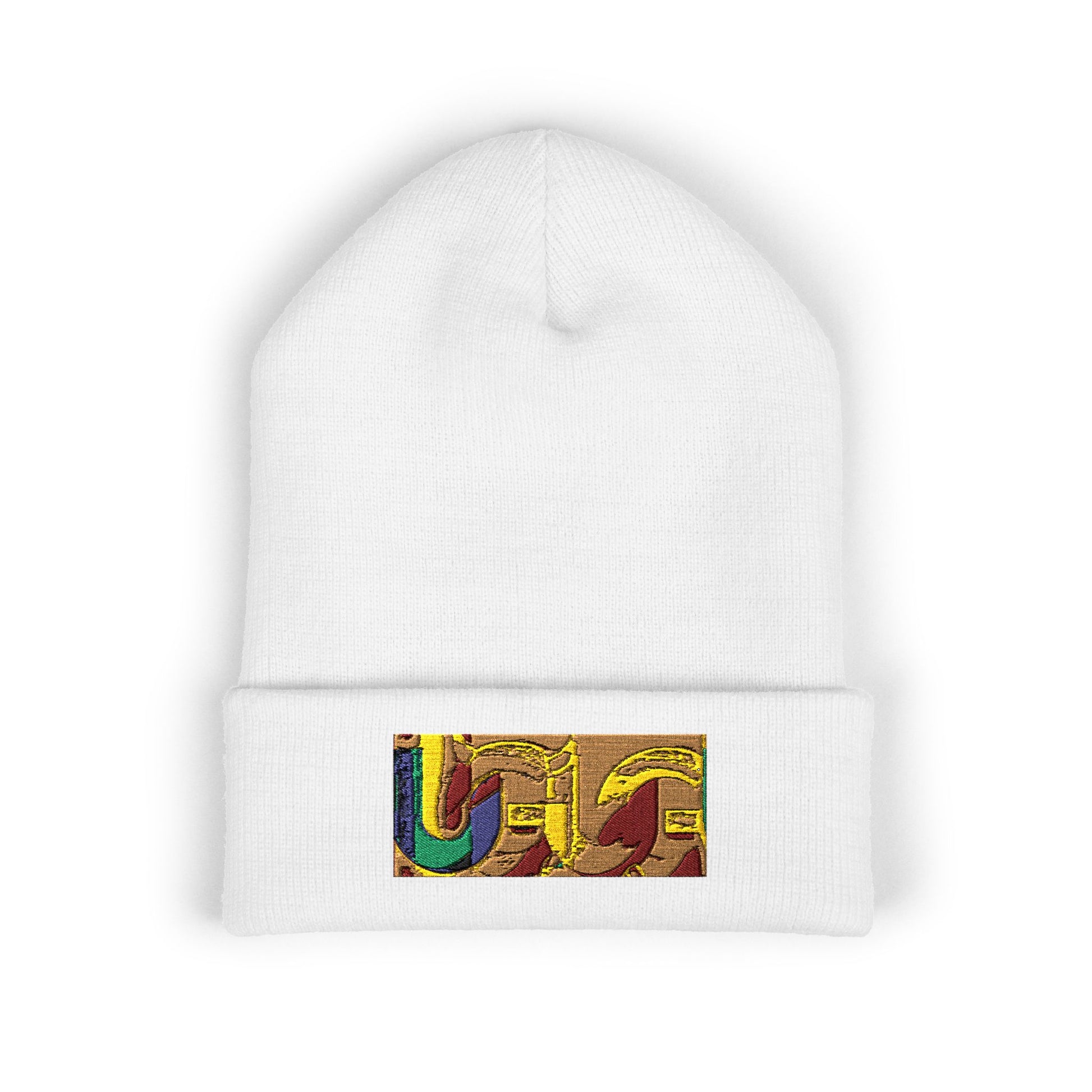 Gold Ungodly Pattern Embroidered Colorblock Abstract Cuffed Beanie