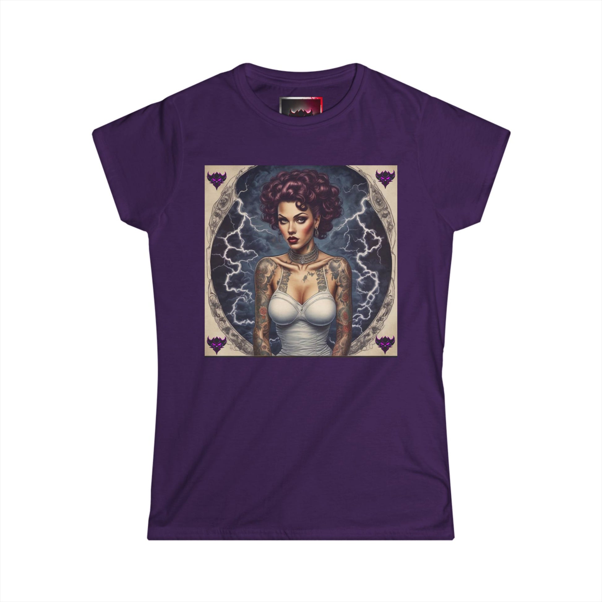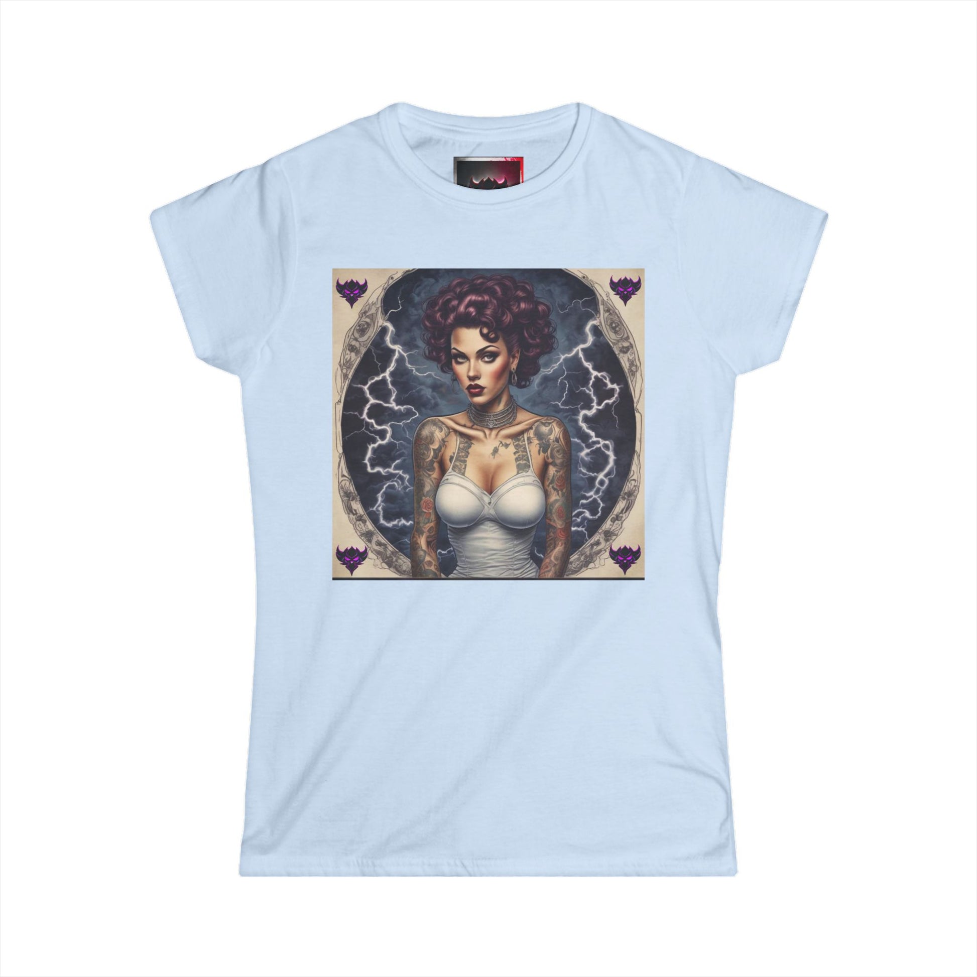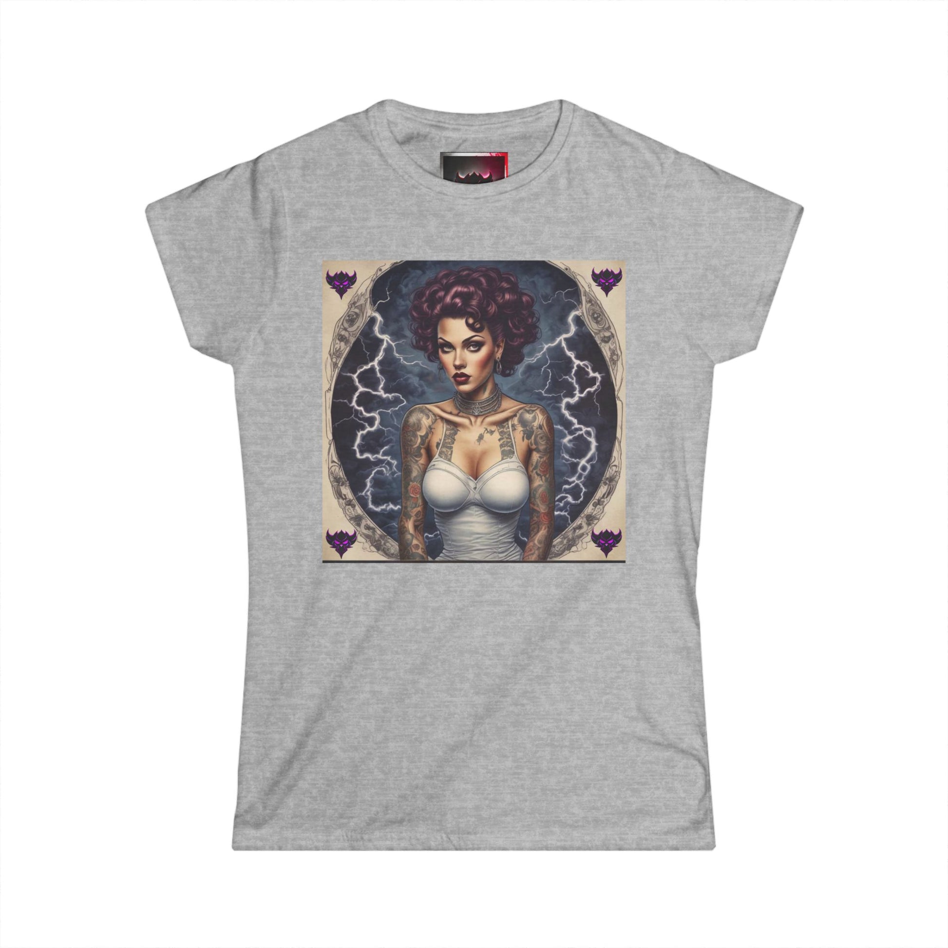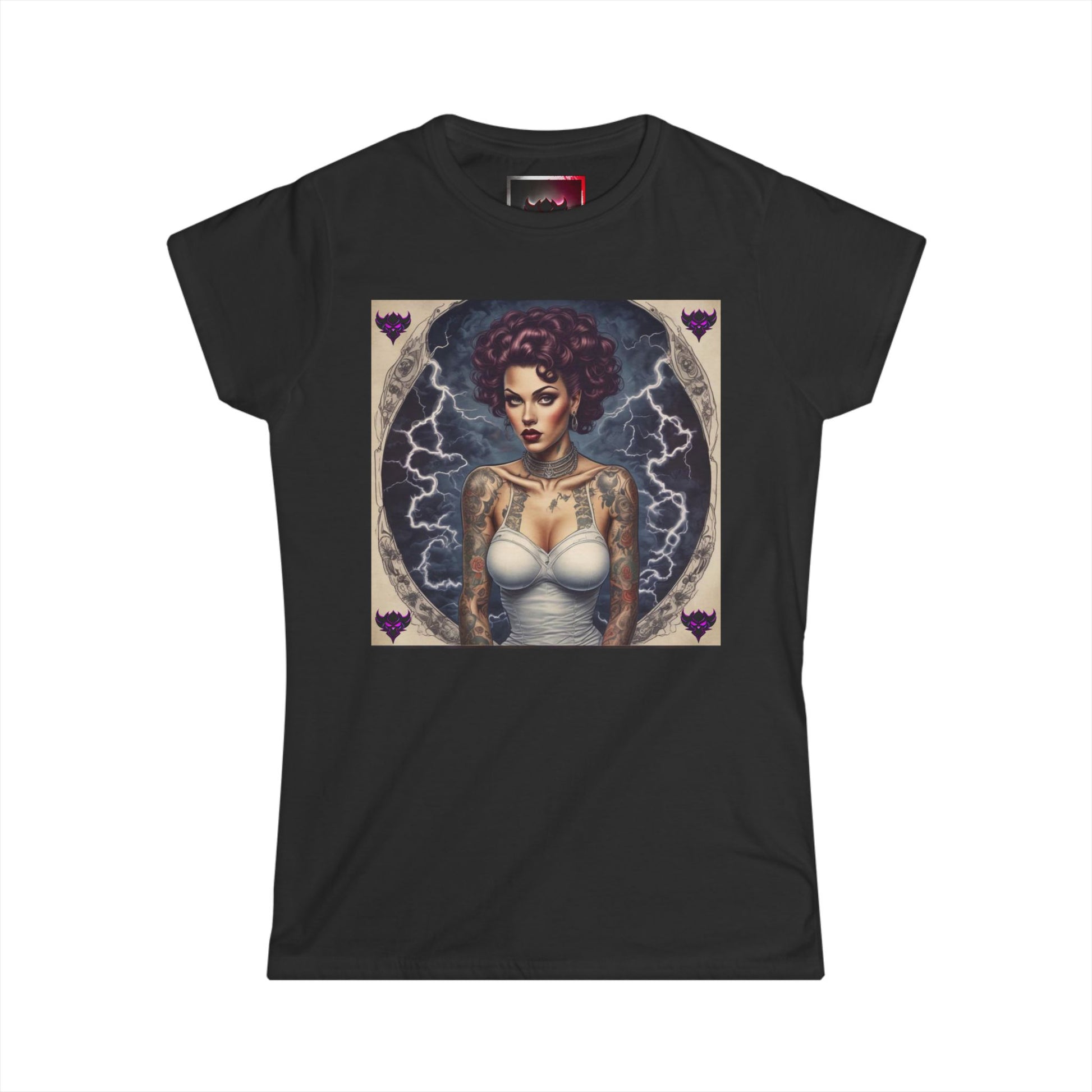 Gothic Glam Frankenstein's Bride Women's Heavy Cotton T-Shirt - Vintage Tattoo Art Design