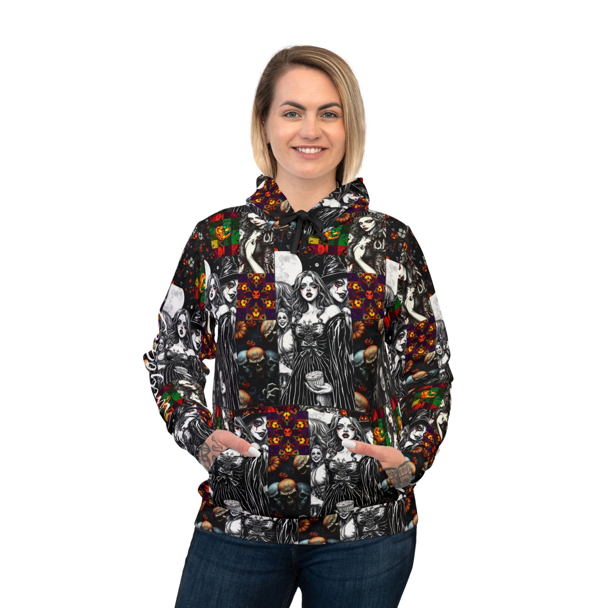 Gothic Vintage Athletic Hoodie, Spooky Fashion, Halloween Wear, Gothic Style, Unique Design, Cozy Hooded Sweatshirt