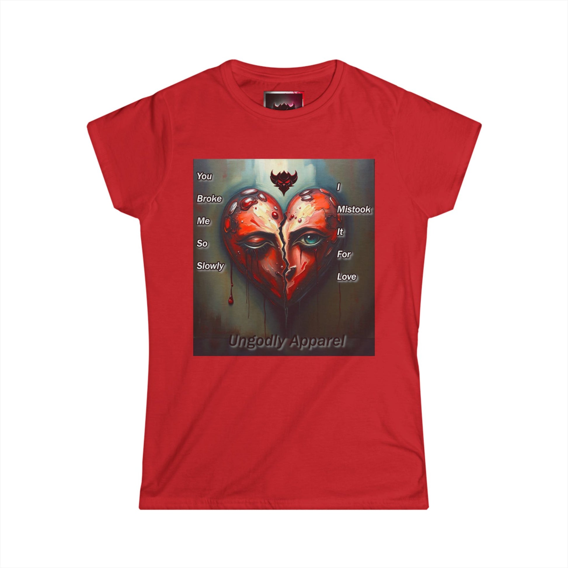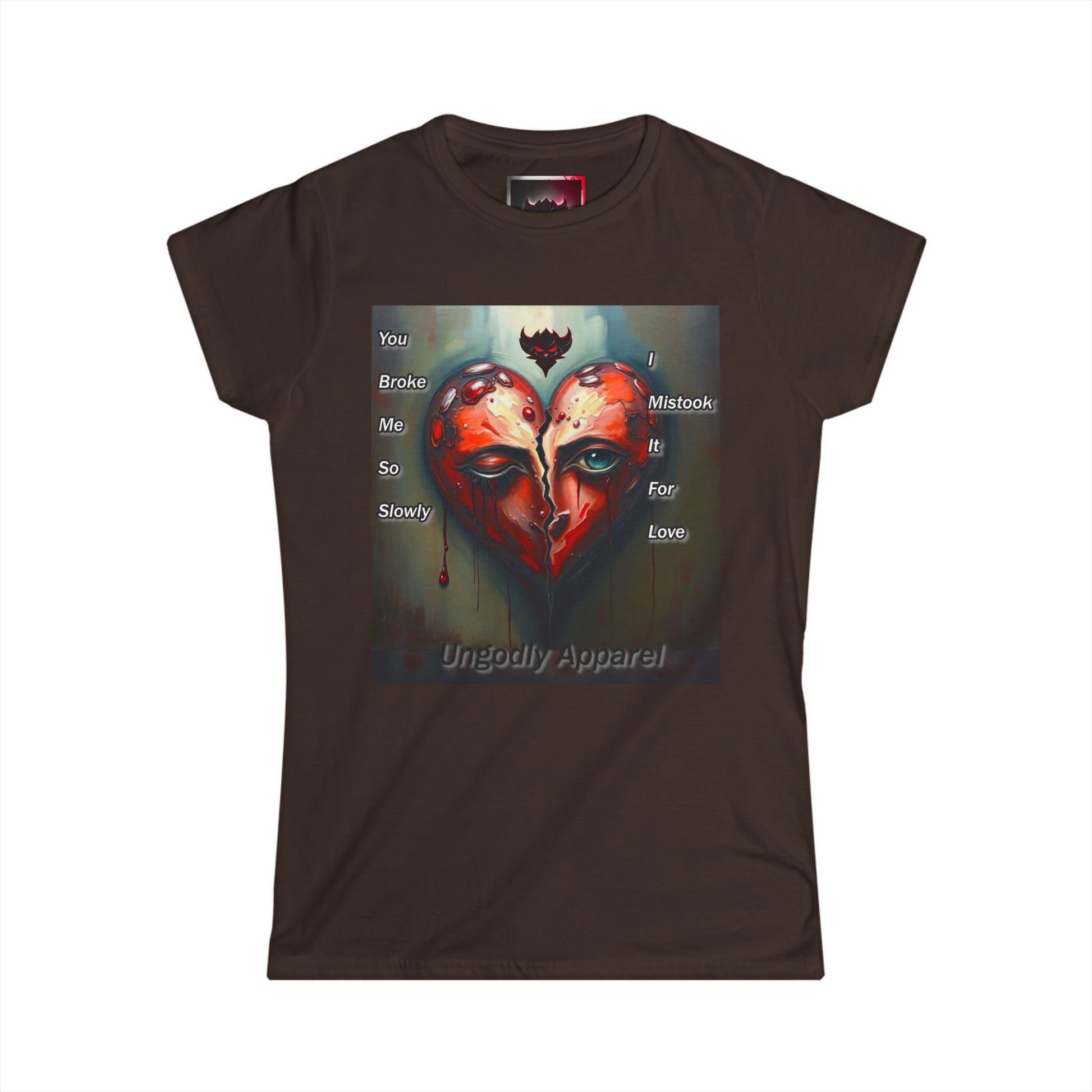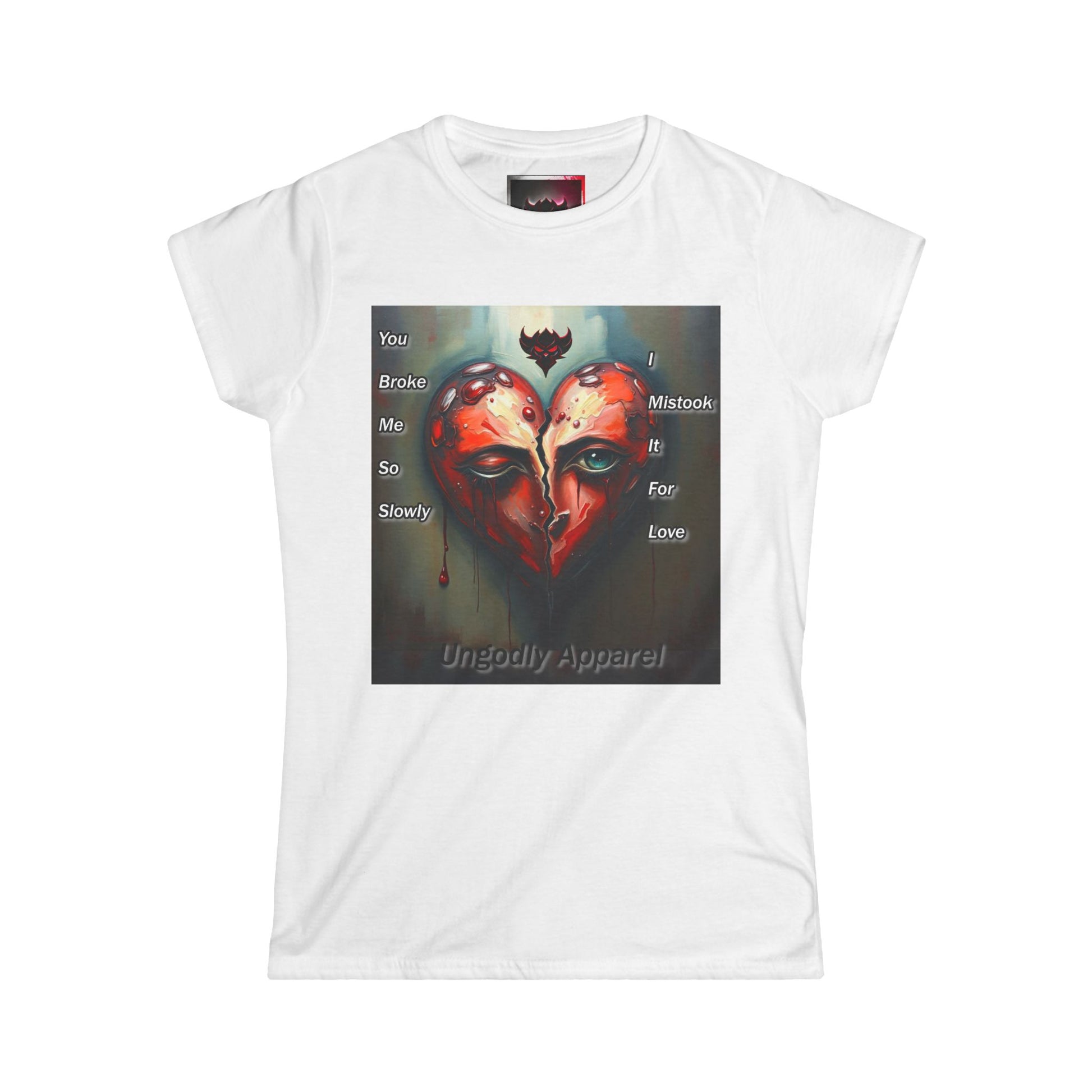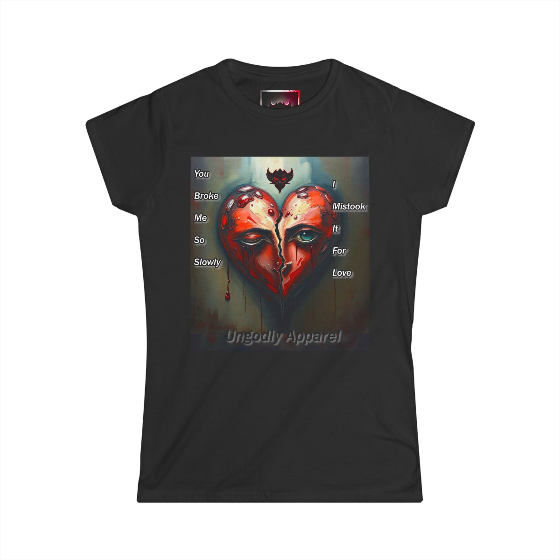 Heartbreak Art Women's Softstyle Tee - "You Broke Me So Slowly, I Mistook it for Love" Design
