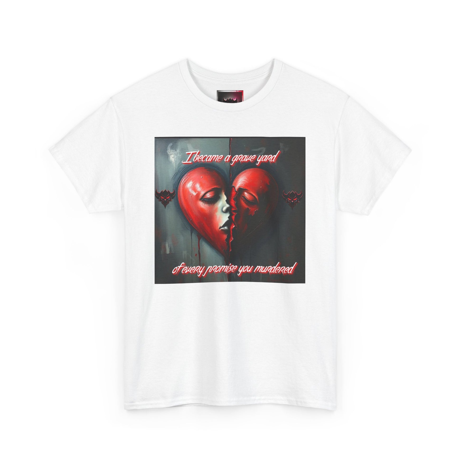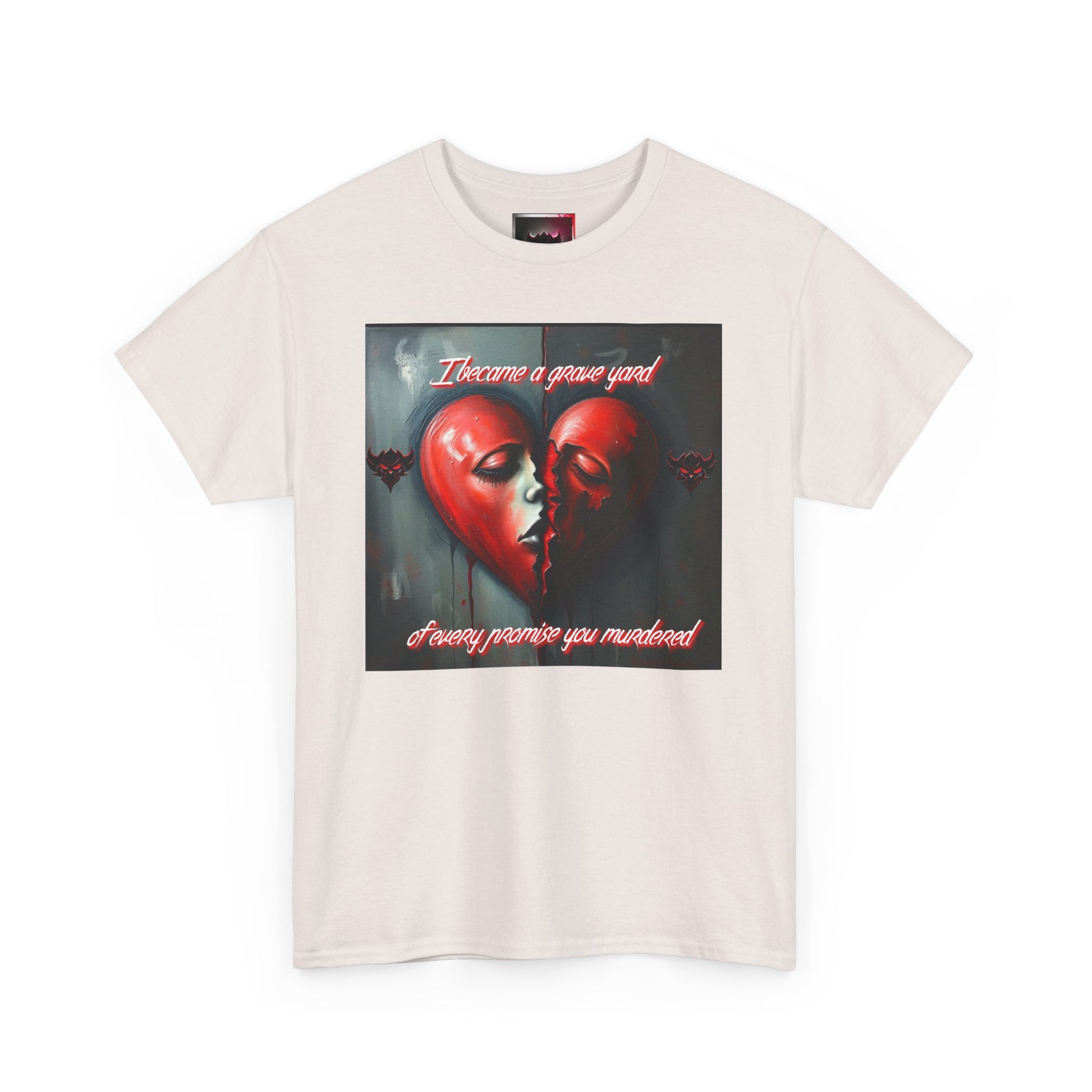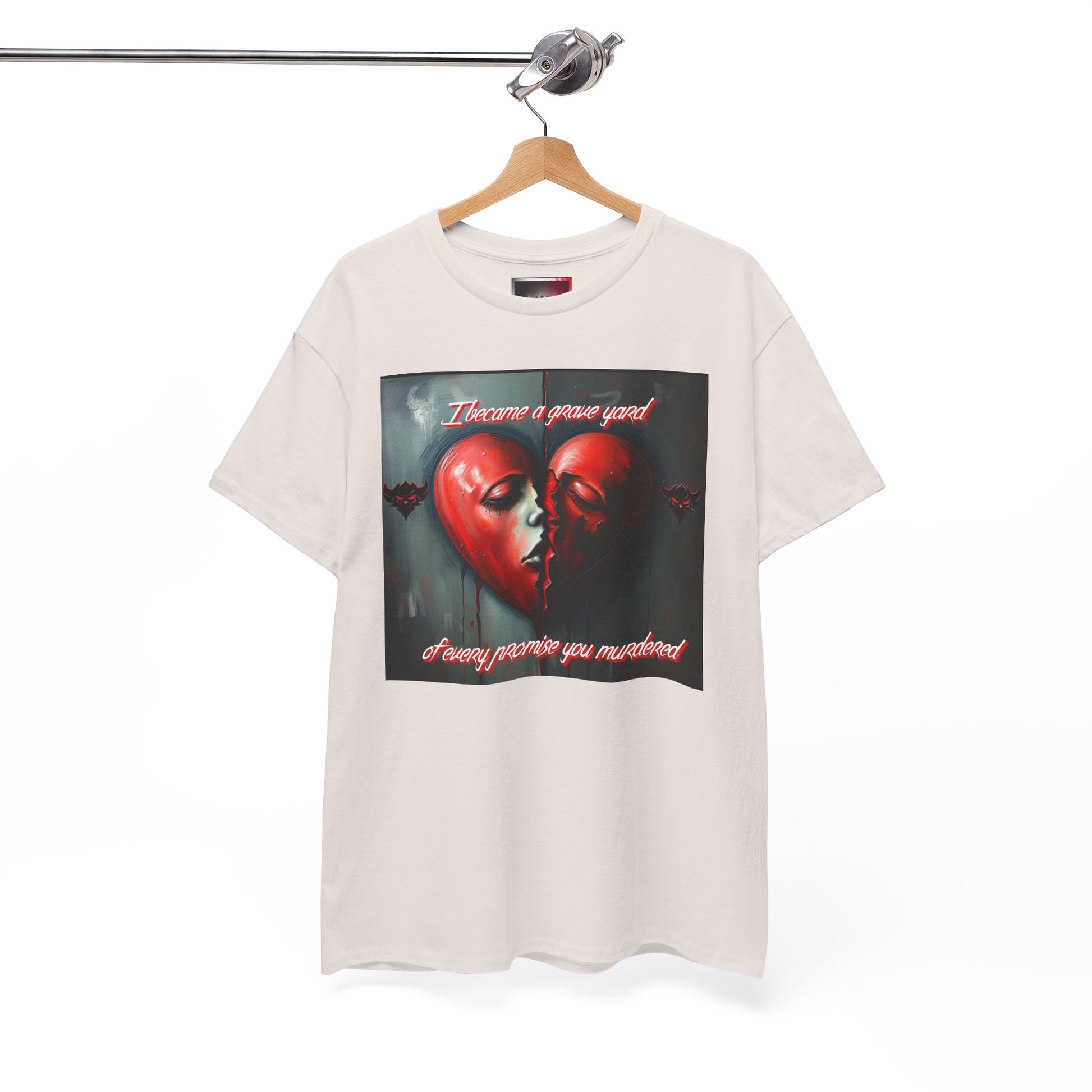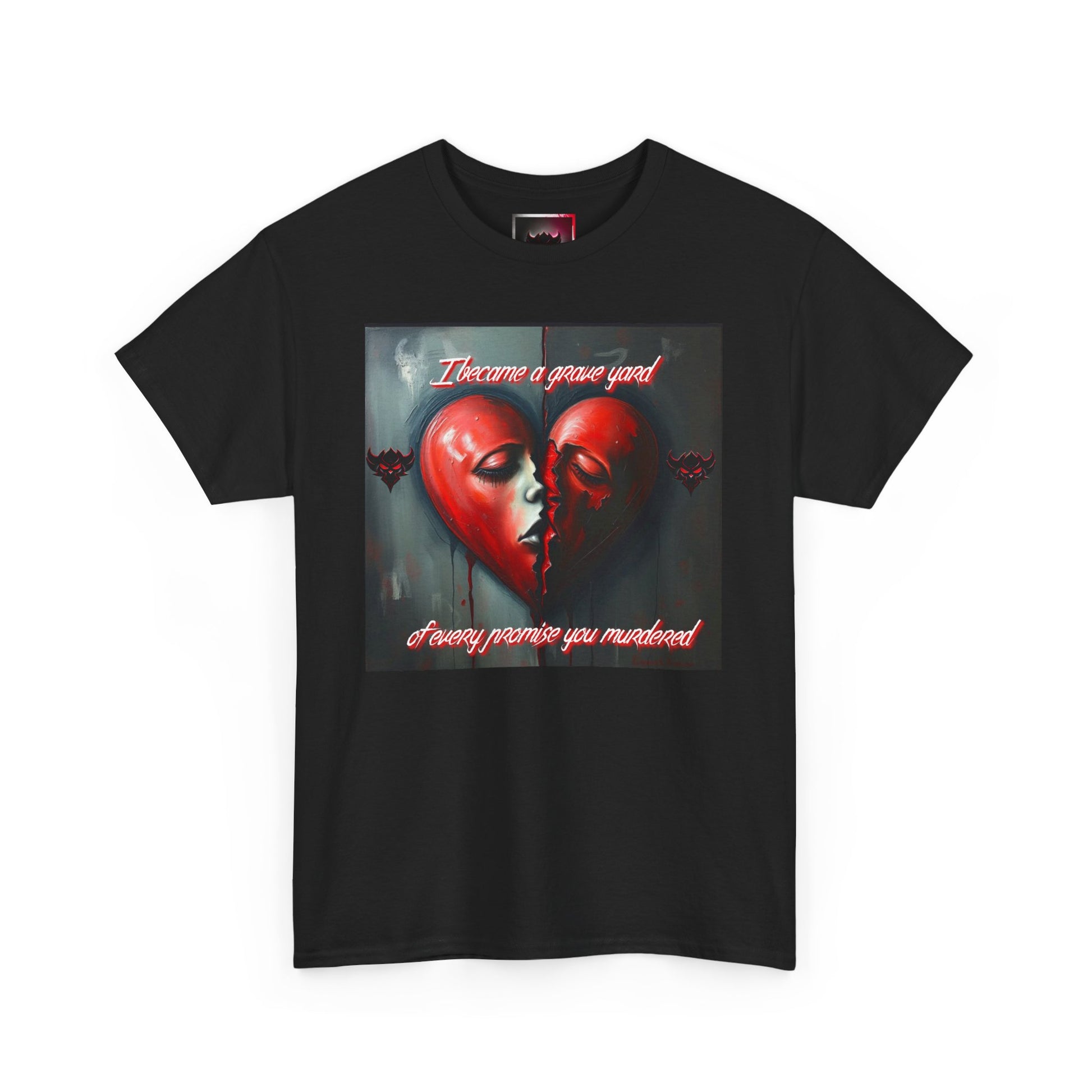 Heartbreak Unisex Heavy Cotton Tee - "I Became a Graveyard to Every Promise You Murdered" Graphic T-Shirt