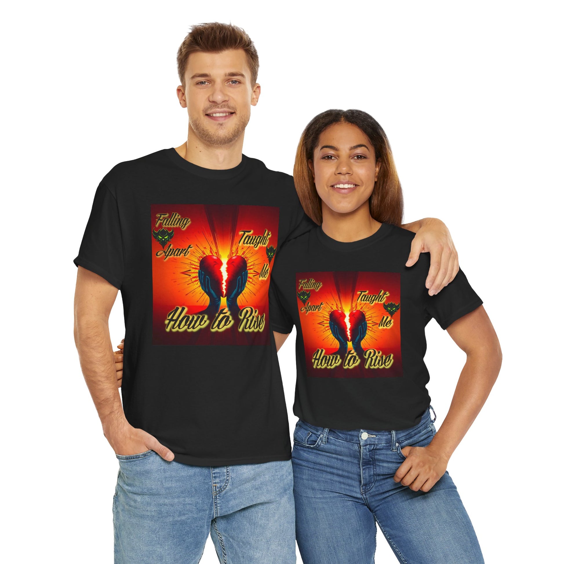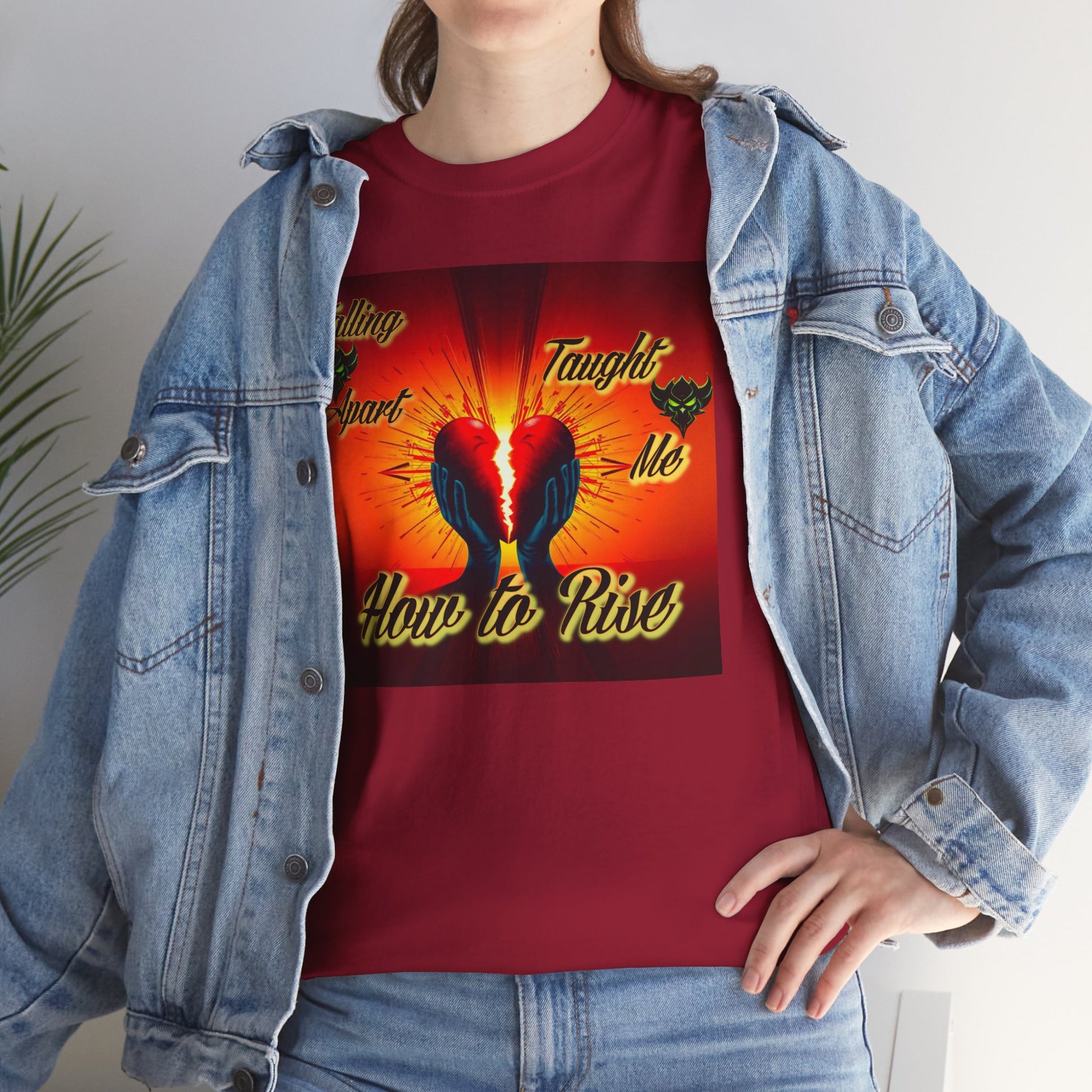 Inspirational Unisex Heavy Cotton Tee - "Falling Apart Taught Me How to Rise" Design