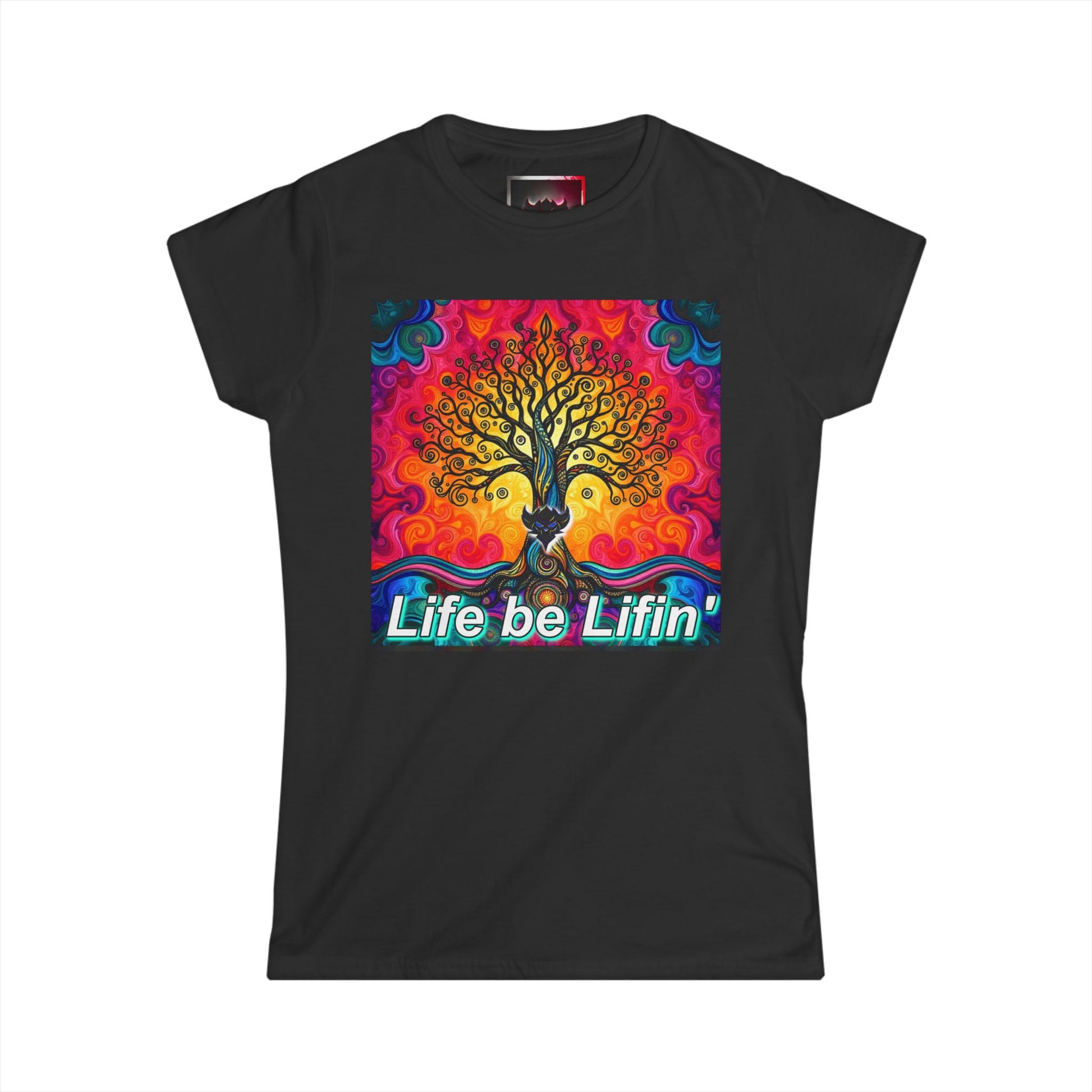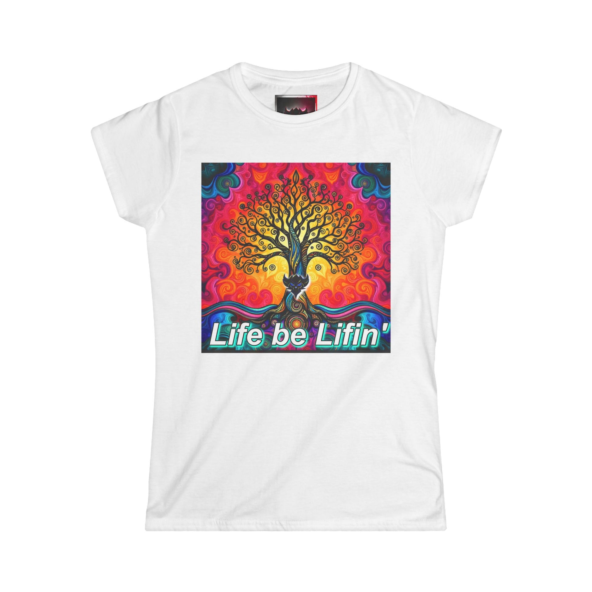 "Life be Liftin" Women's Softstyle Tee - Vibrant Tree Design for Positive Vibes