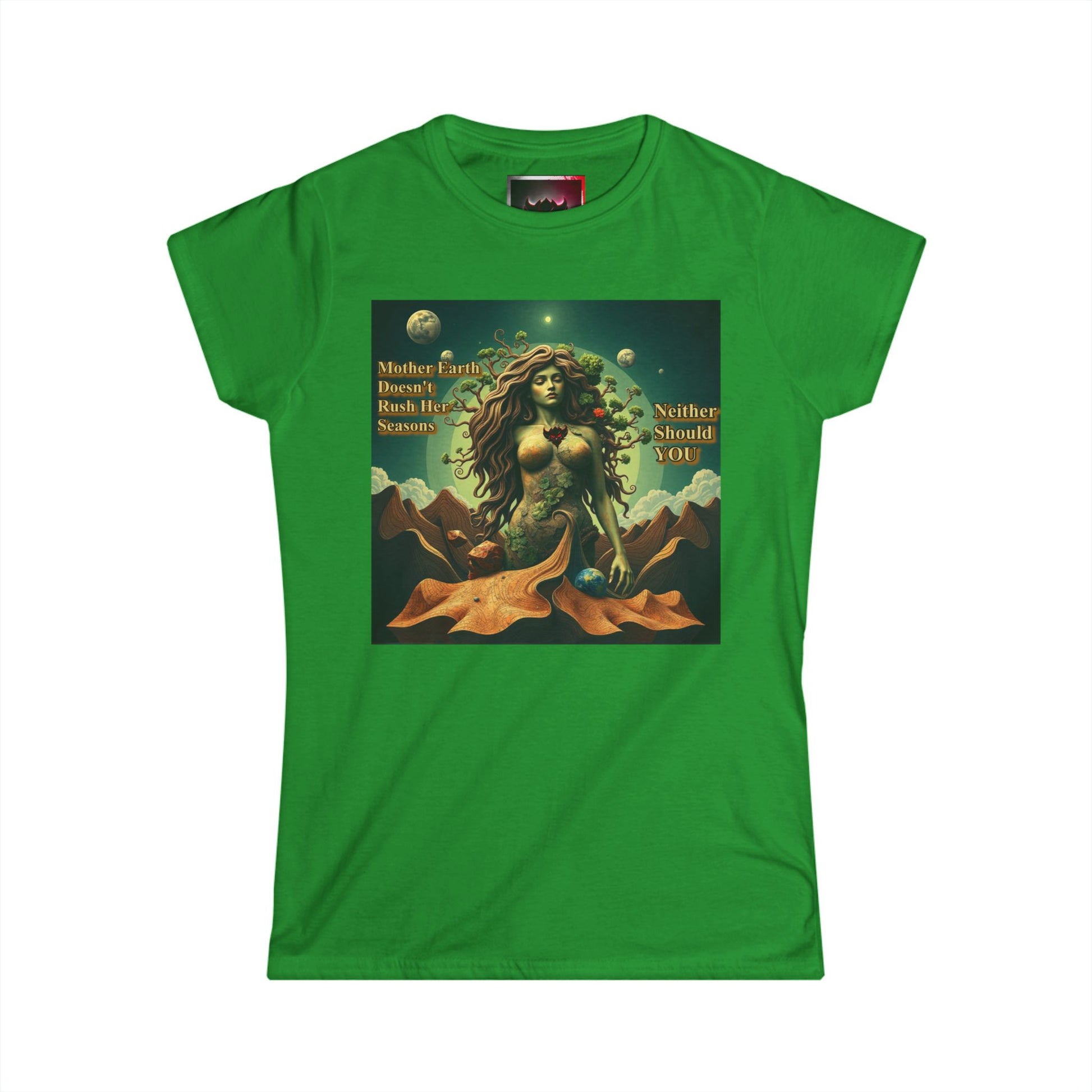 "Mother Earth Doesn't Rush her Reasons, Neither Should You" Graphic Women's Tee - Eco-Friendly Softstyle T-Shirt