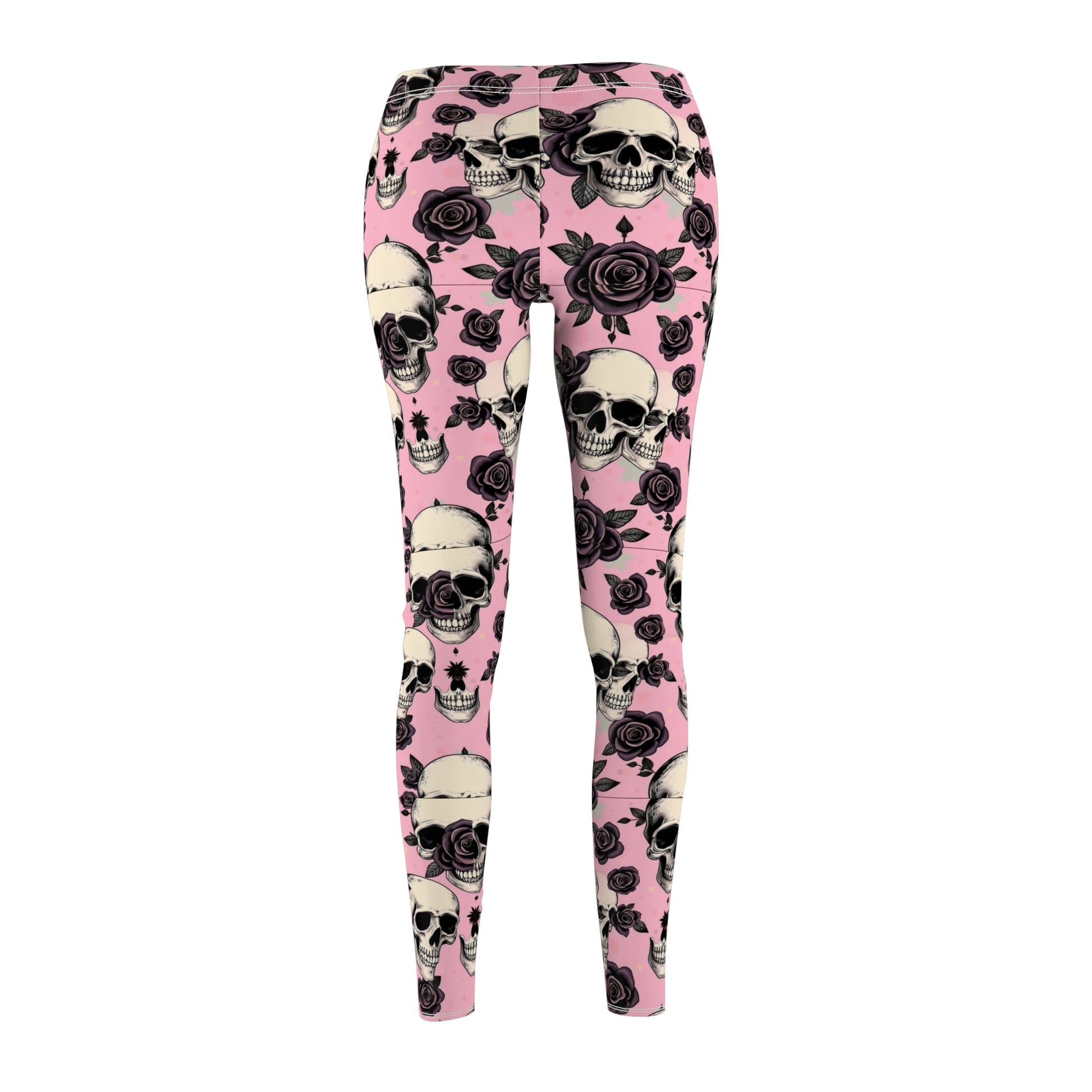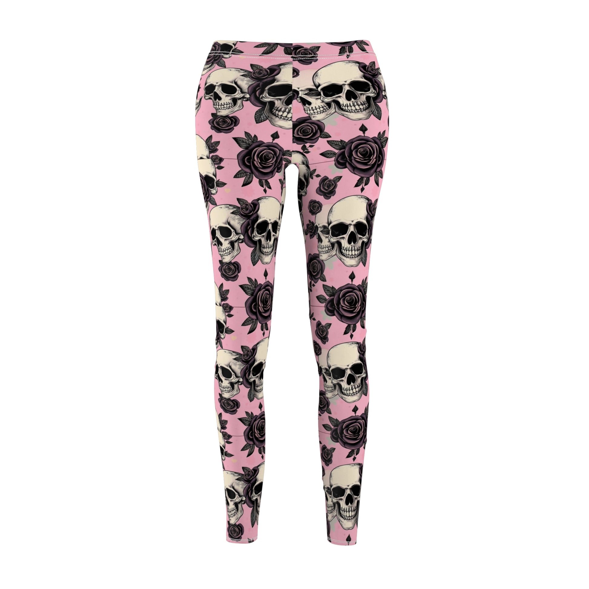 Pink Skull & Rose Leggings — Gothic Floral Women's Leggings