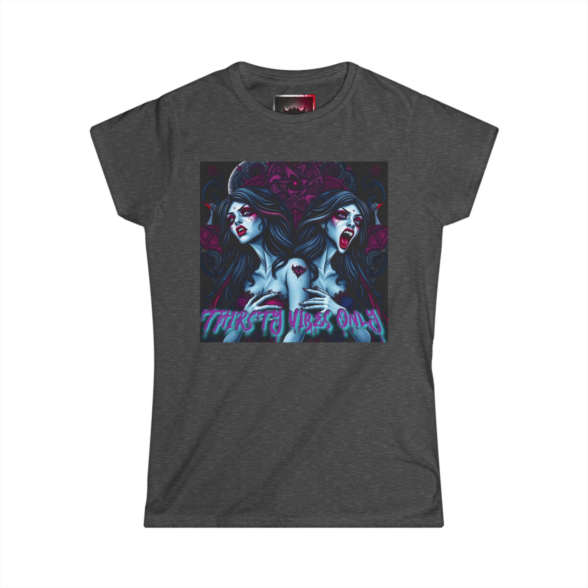"Thirsty Vibes Only" Women's Softstyle Tee - Edgy Vampire Graphic T-Shirt for Bold Fashionistas, Perfect for Halloween, Everyday Wear, Gifts