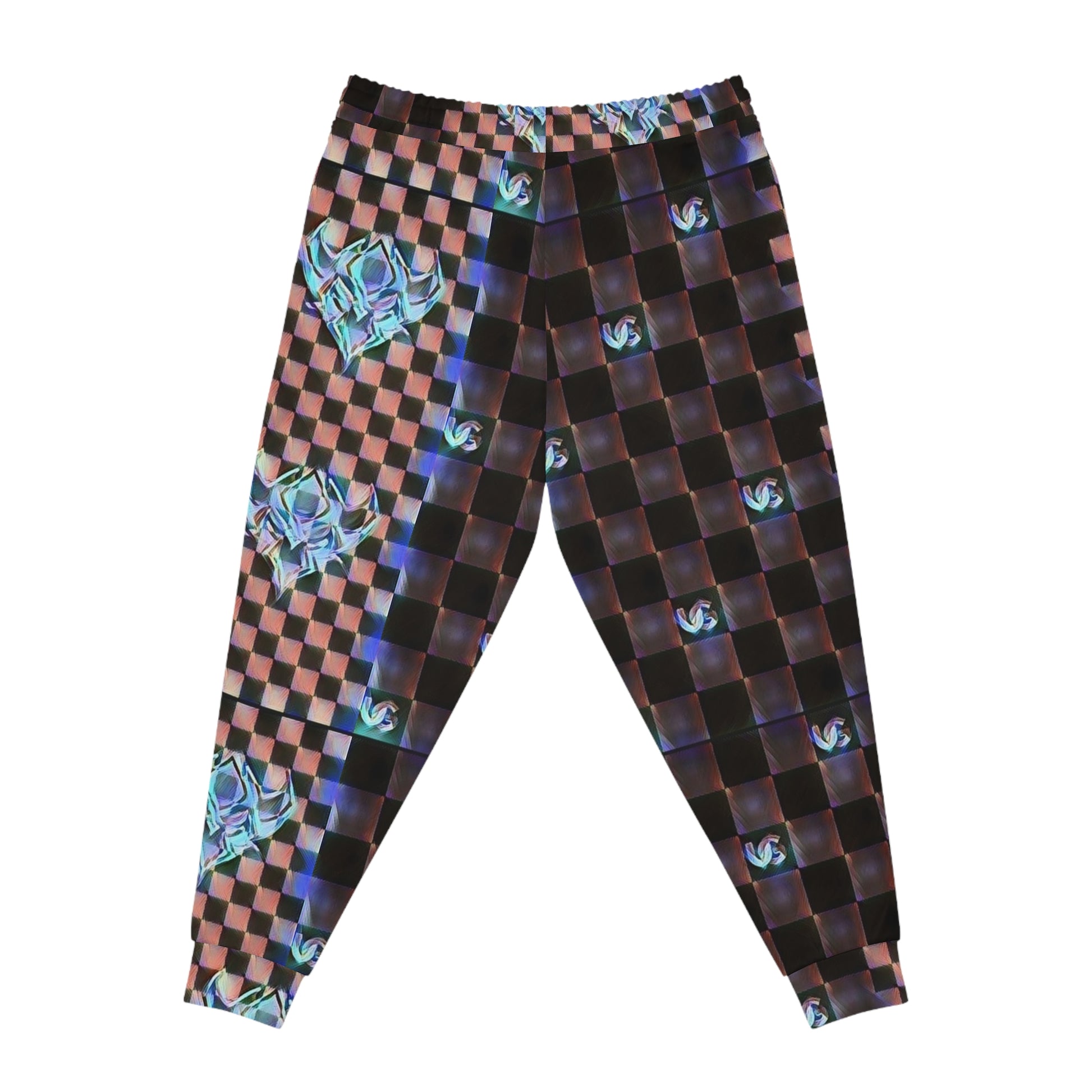 UG Checkered Pattern Rose Athletic Joggers — Floral Geometric AOP Sweatpants