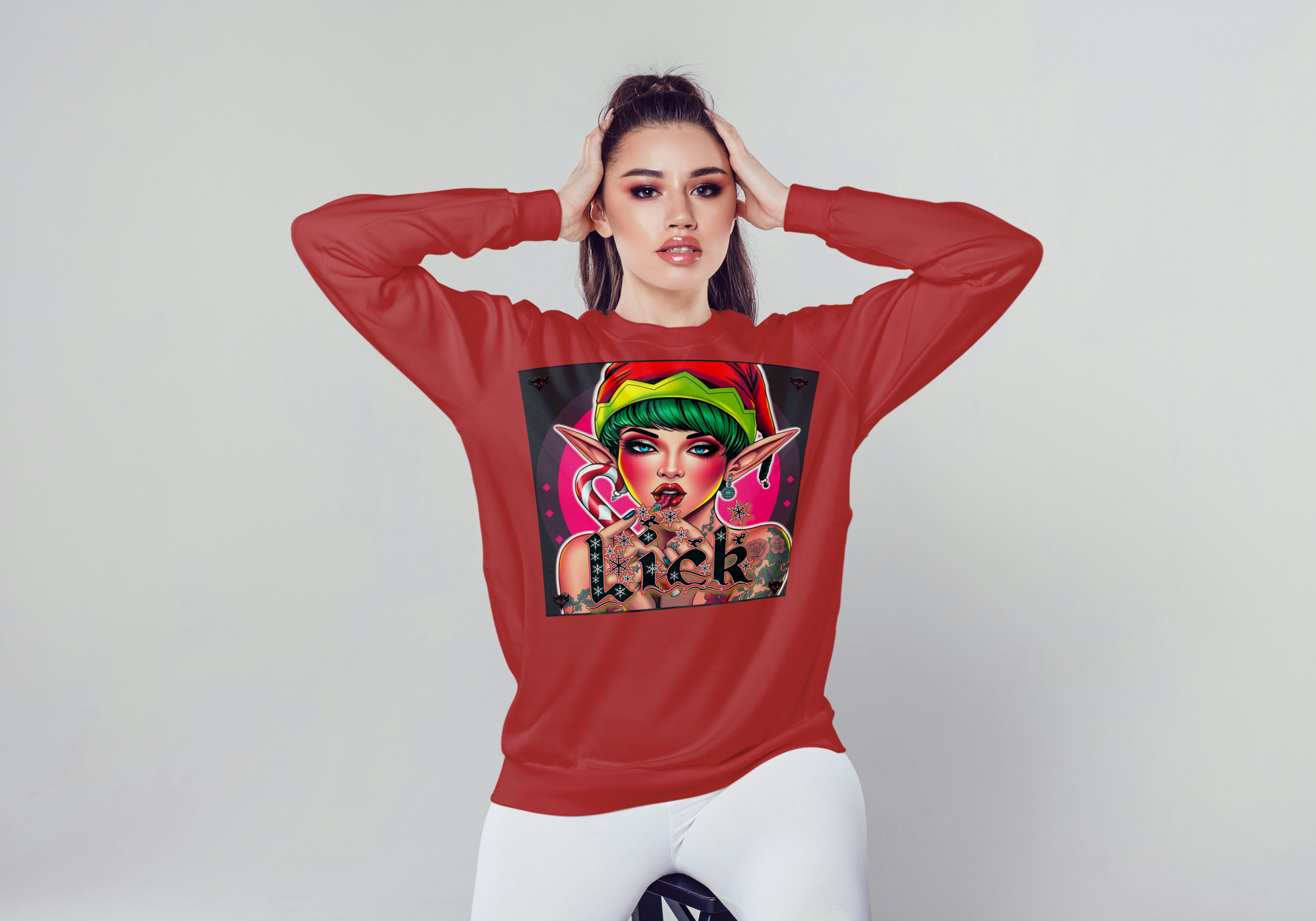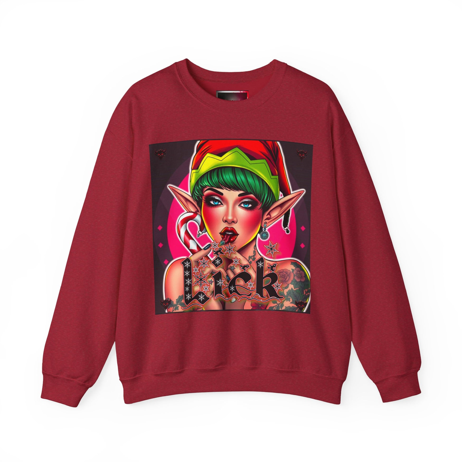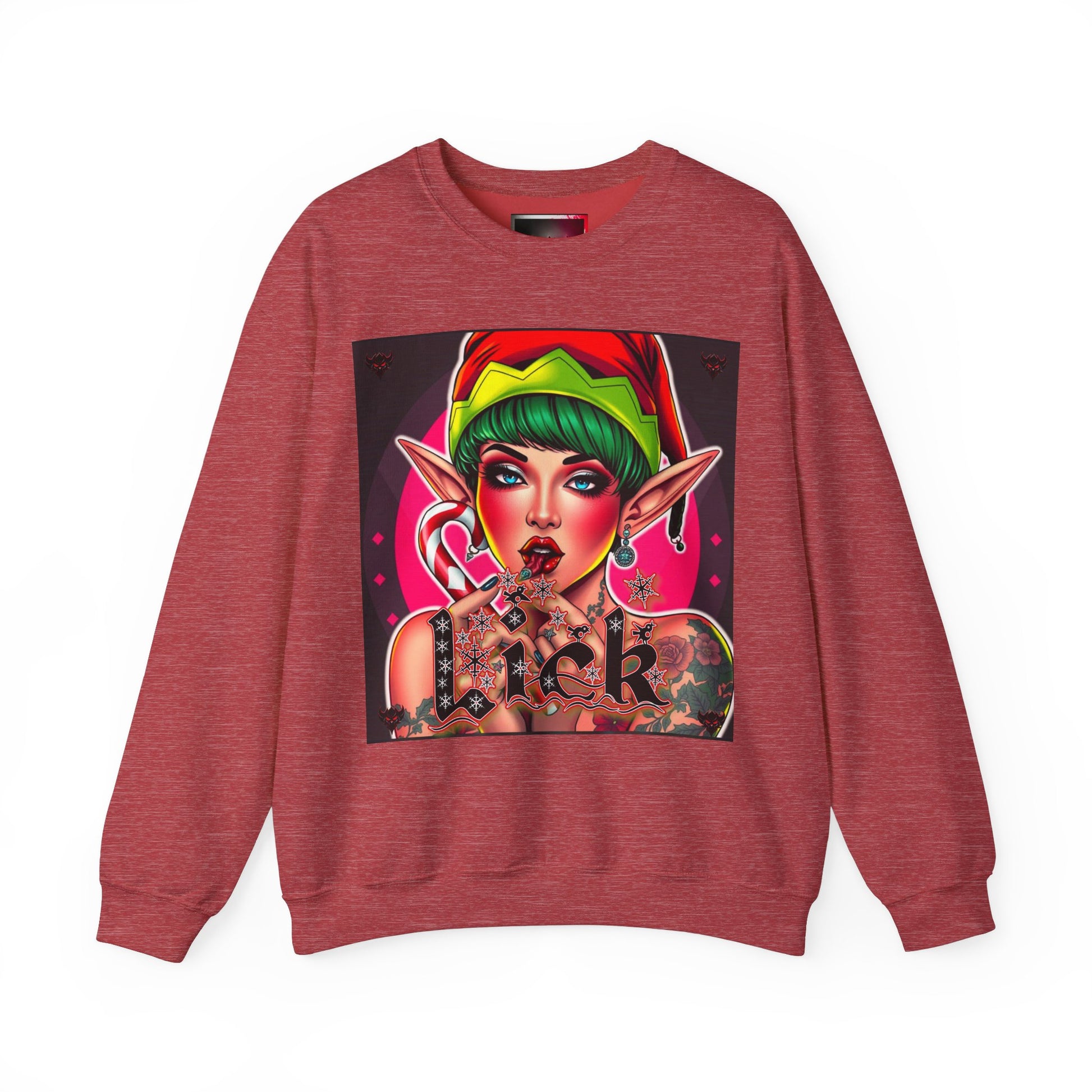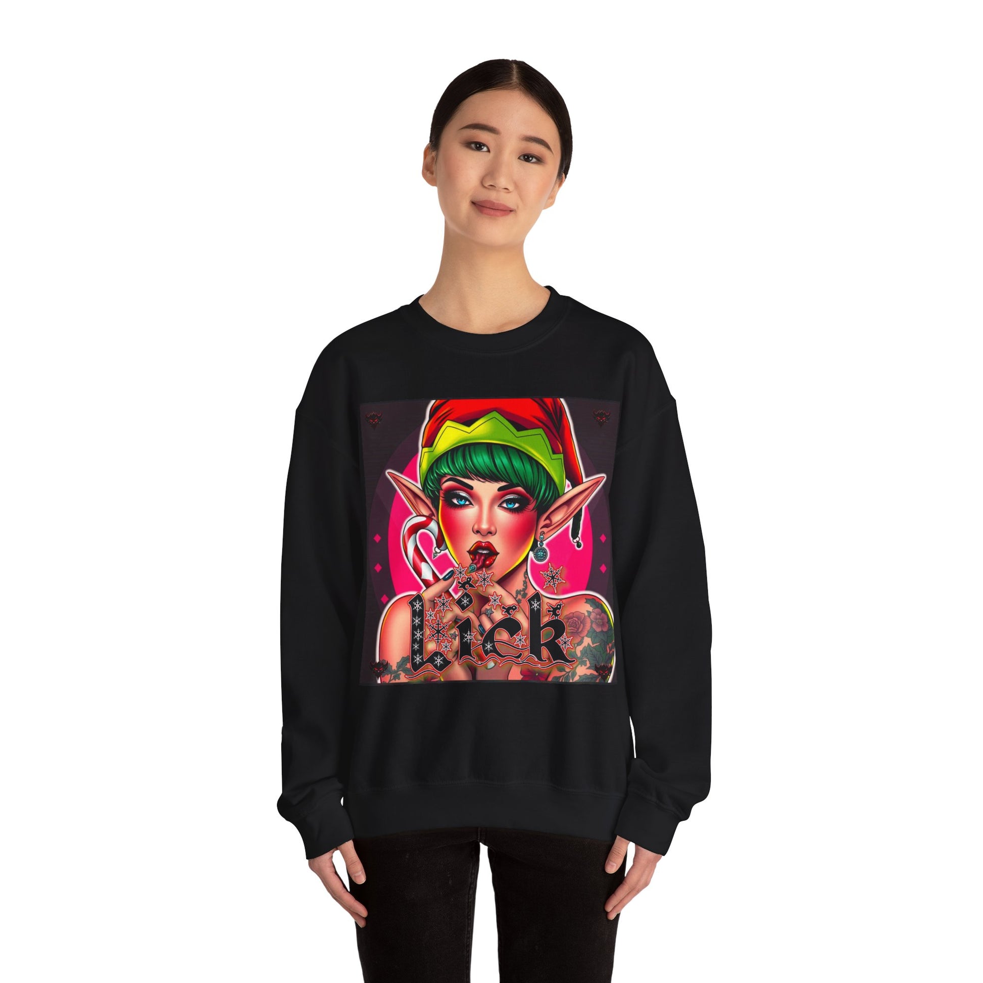 "Lick" Enchanting Elf Graphic Crewneck Sweatshirt - Unisex Heavy Blend for Festive Vibes
