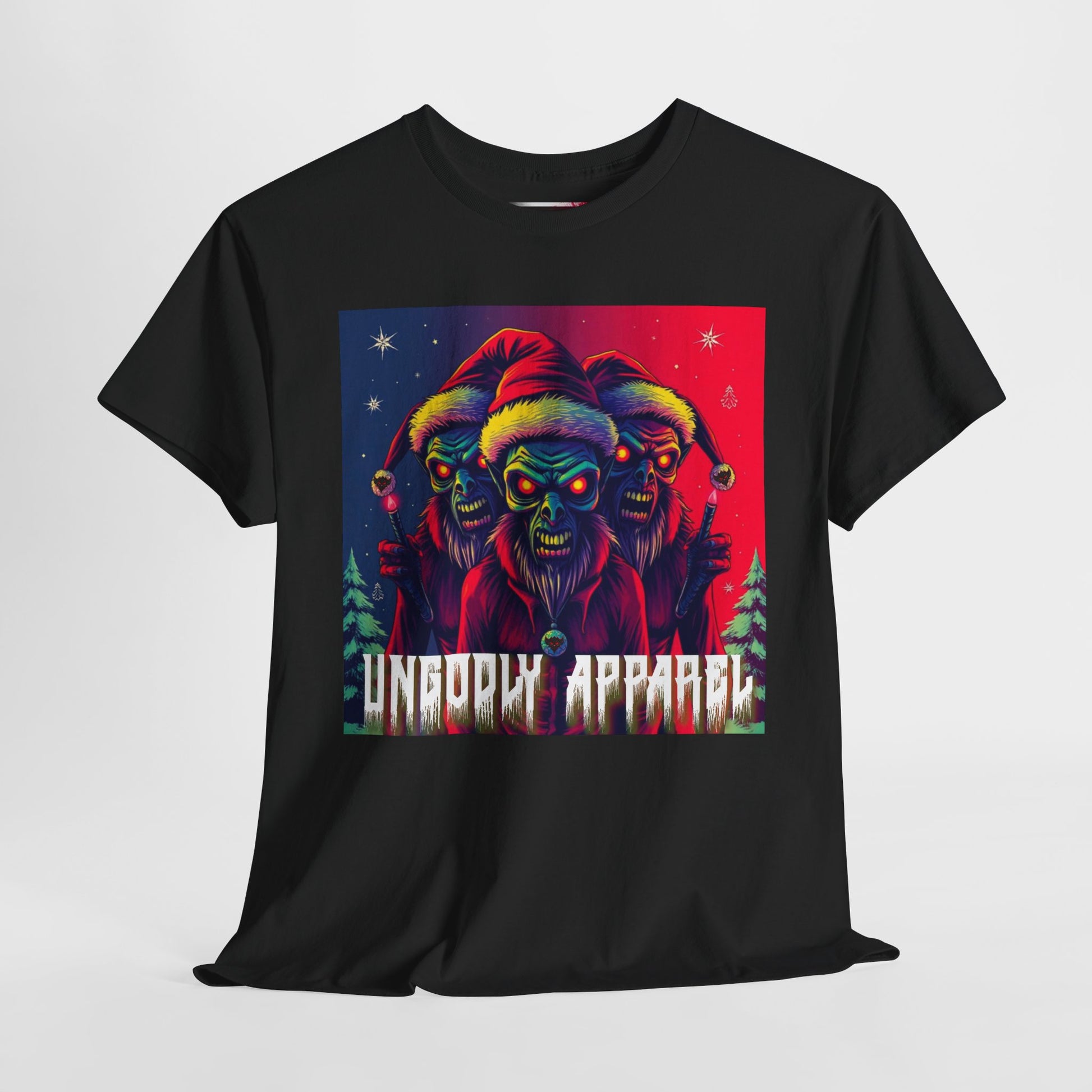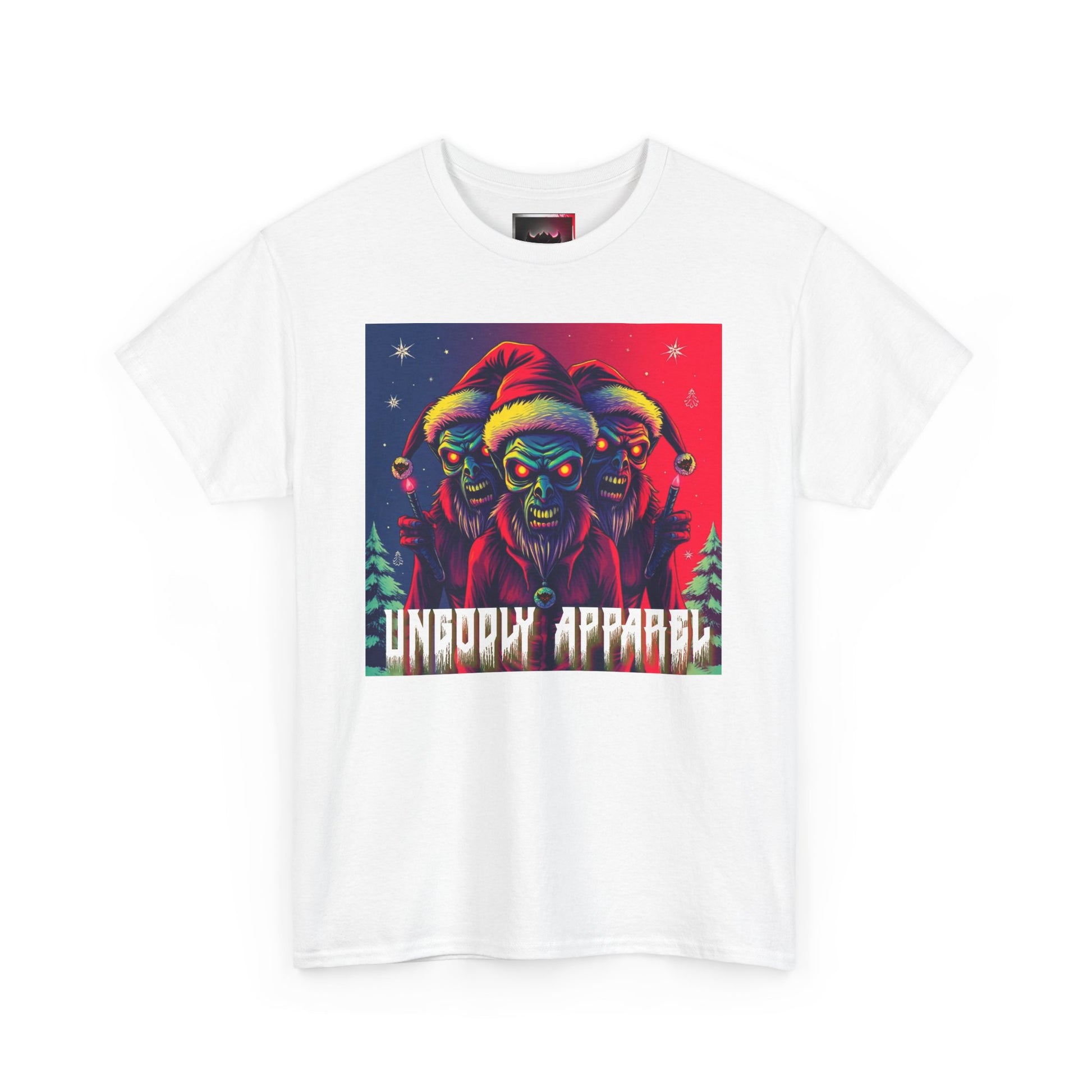 Unisex Heavy Cotton T-Shirt - Zombie Holiday Elves Graphic Tee for Casual Wear