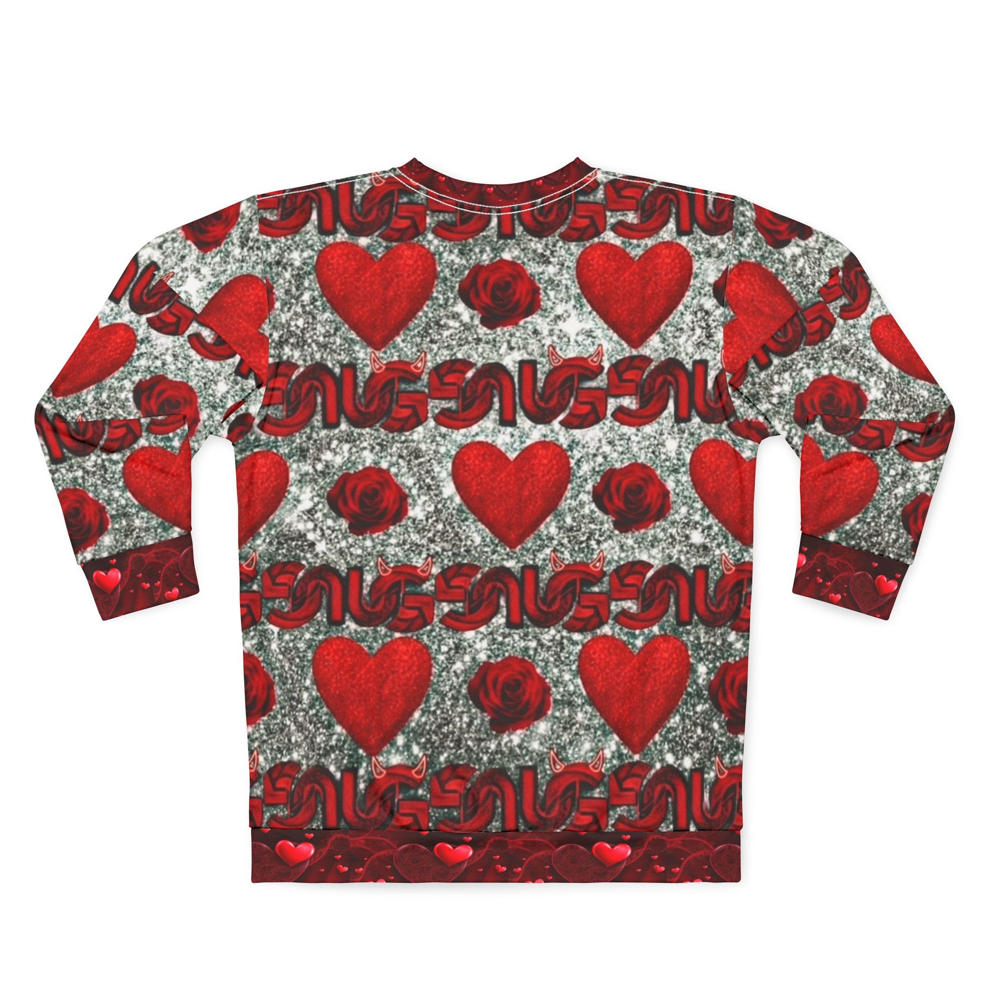 Unisex Valentine Heart Pattern Sweatshirt – All-Over Print Red Hearts & Roses Crewneck