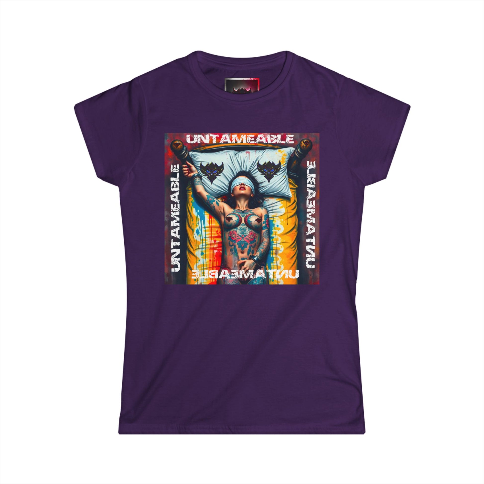 The woman's softstyle tee is a more feminine take on the classic tee. The sleeves are shortened to reveal some shoulder. The fabric is 100% ringspun cotton for all solid colors. The shoulders are taped with twill to prolong durability. The collar seam is reinforced with ribbed knitting.