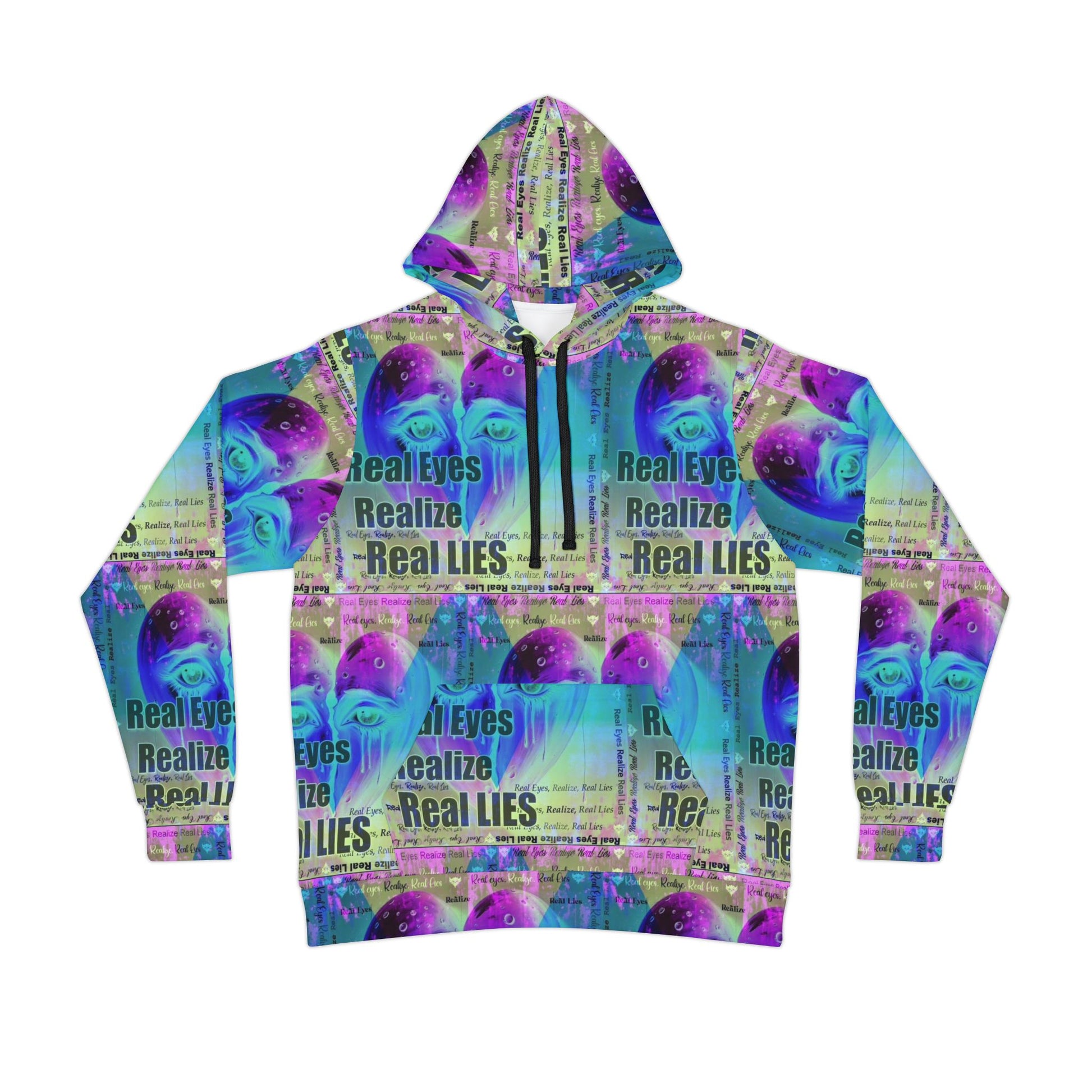 Vibrant Graphic Athletic Hoodie - "Real Eyes Realize Real Lies"