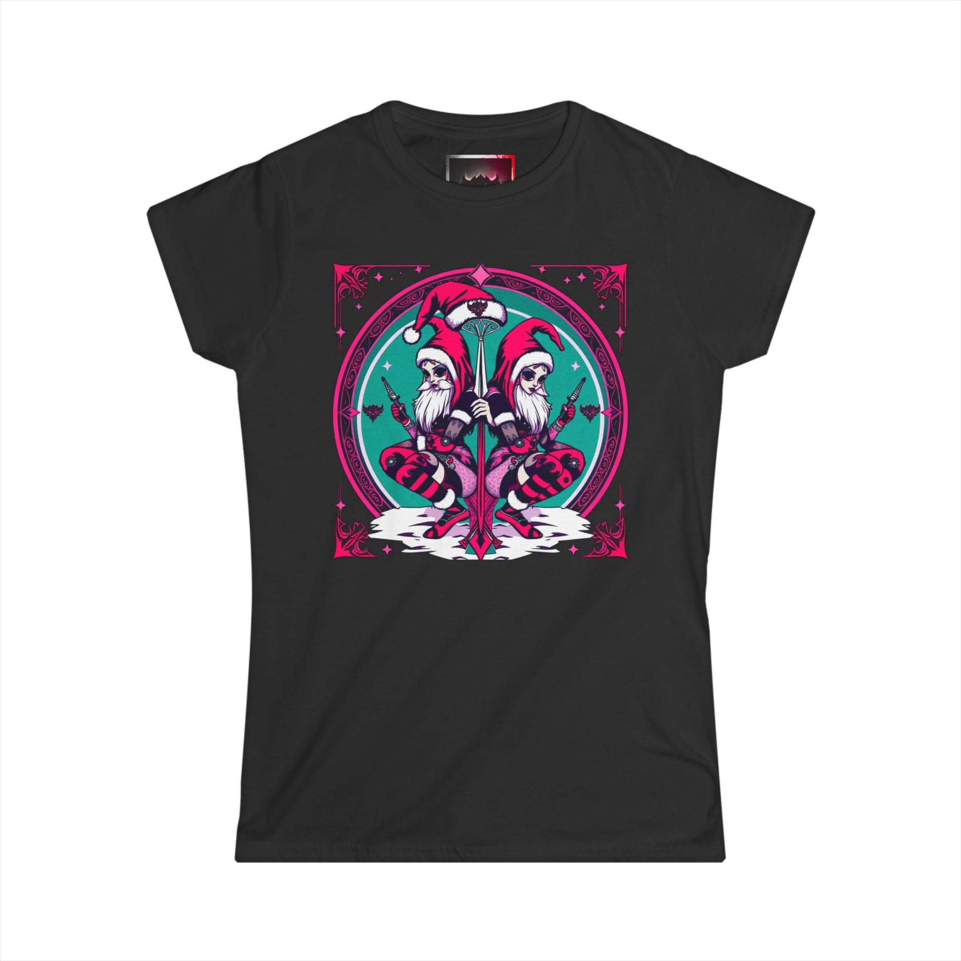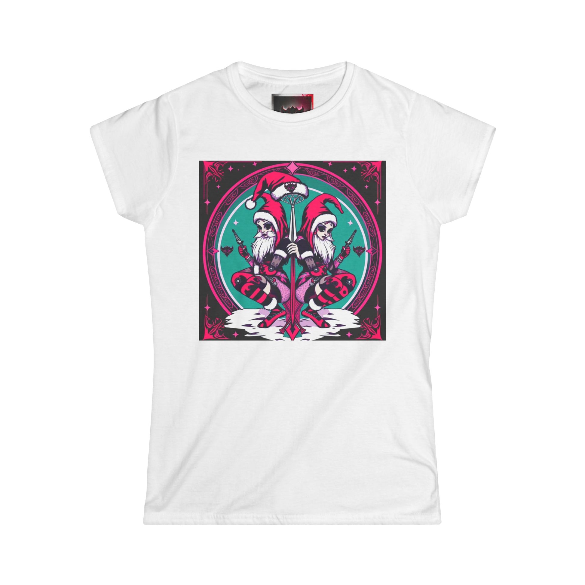 Whimsical Women's Softstyle T-Shirt - Festive Dual-Gothic Elf Design for Holidays