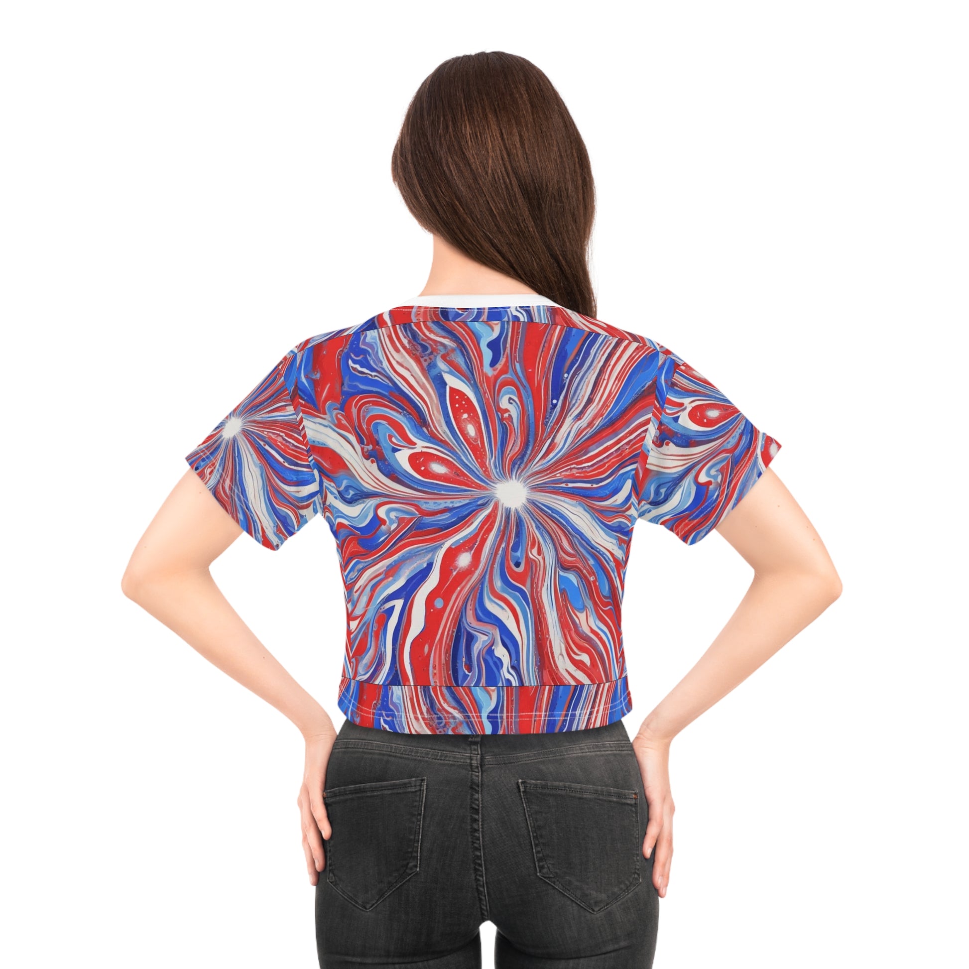 4th of July crop top! Comfy. Festival. Say less. Made 100% with silky soft polyester that is both lightweight and breathable.